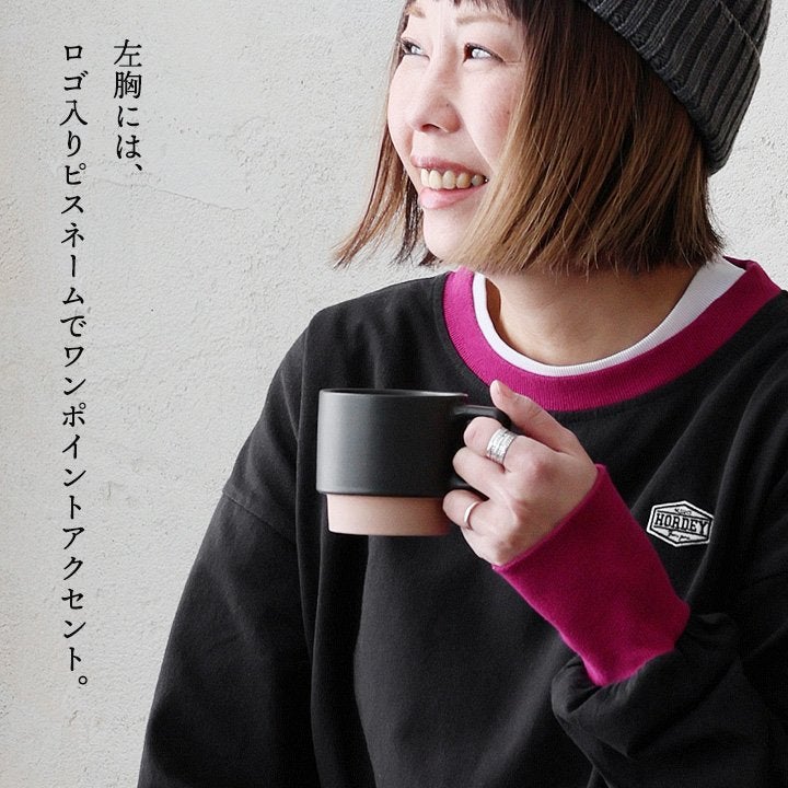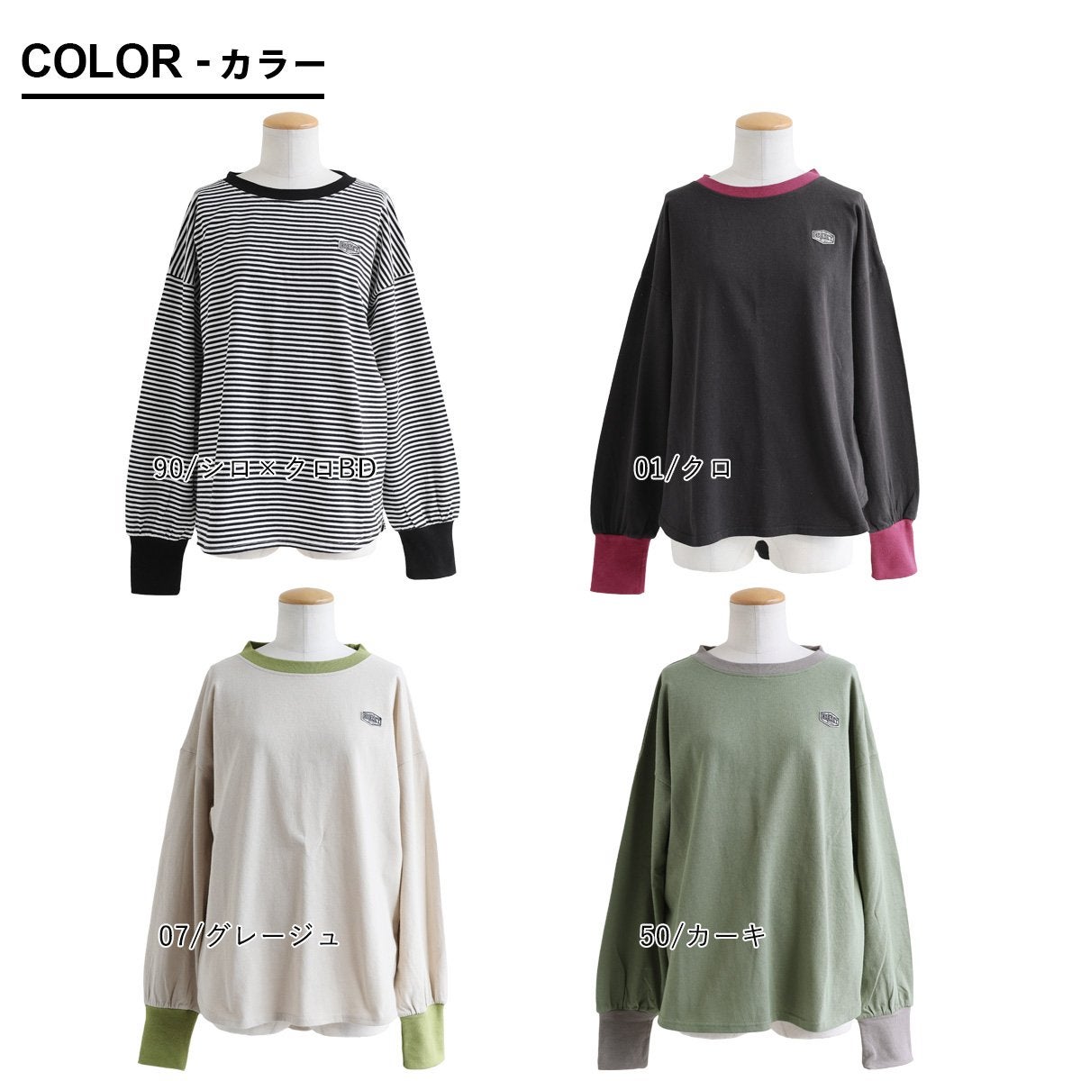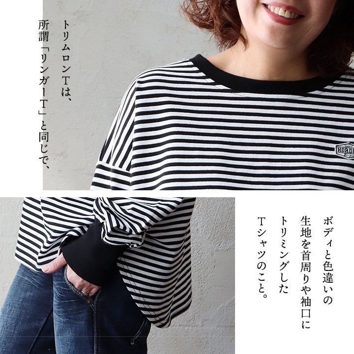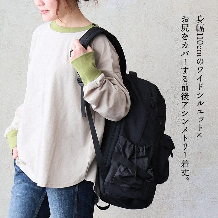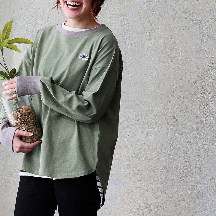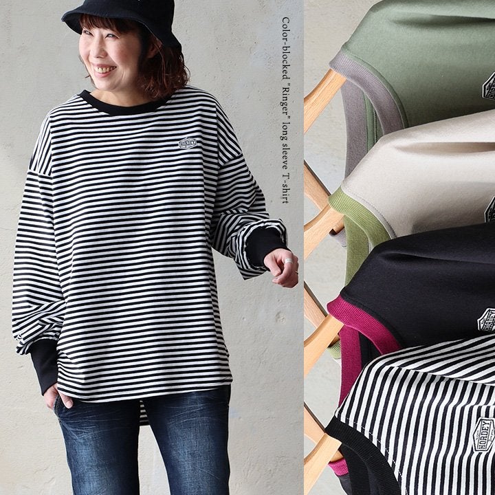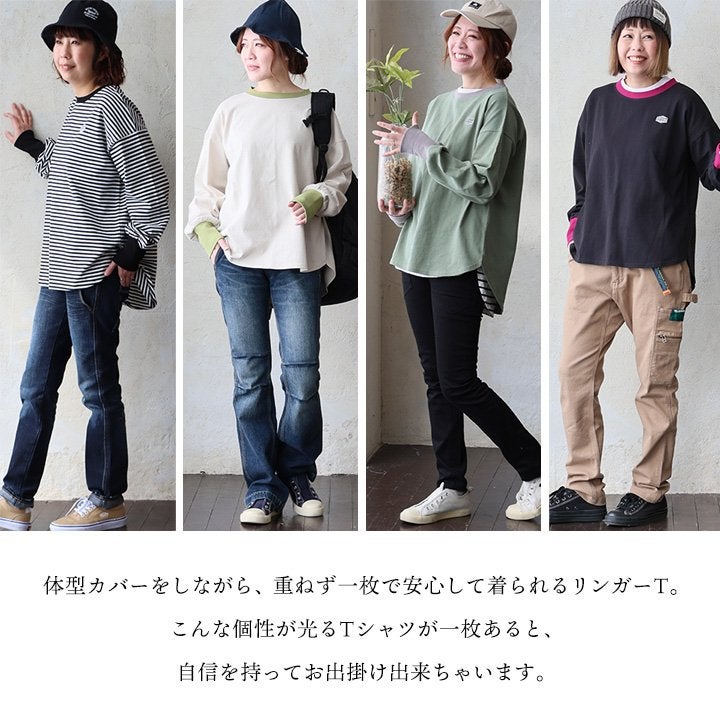 個性を引き立てる「着痩せ」ロンT。 着痩せ ロンT レディース 長袖tシャツ ワイド 重ね着 リンガー 配色 リブ 切り替え 綿100 コットン 天竺 トップス 無地 薄手 軽い お尻 体系 カバー おしゃれ カジュアル パティ
