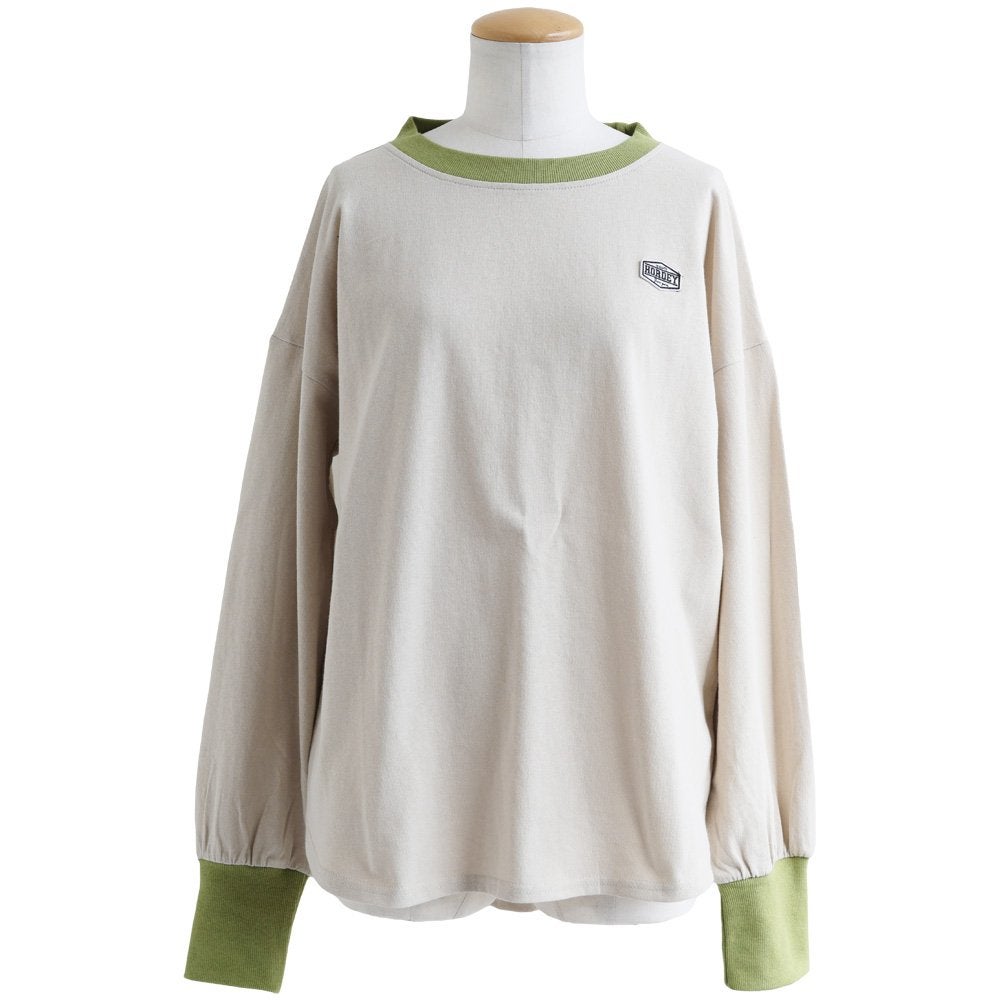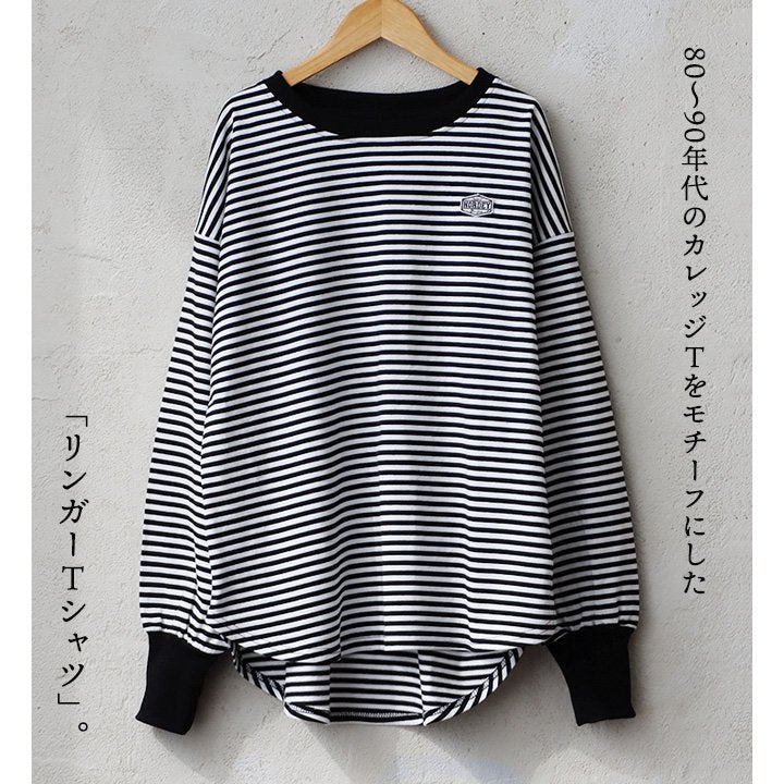 レトロ可愛い「着痩せ」ロンT。 着痩せ ロンT レディース 長袖tシャツ ワイド 重ね着 リンガー 配色 リブ 切り替え 綿100% トップス 無地 薄手 軽い 秋 お尻 体系 カバー おしゃれ カジュアル パティ GENTIL ジャンティ