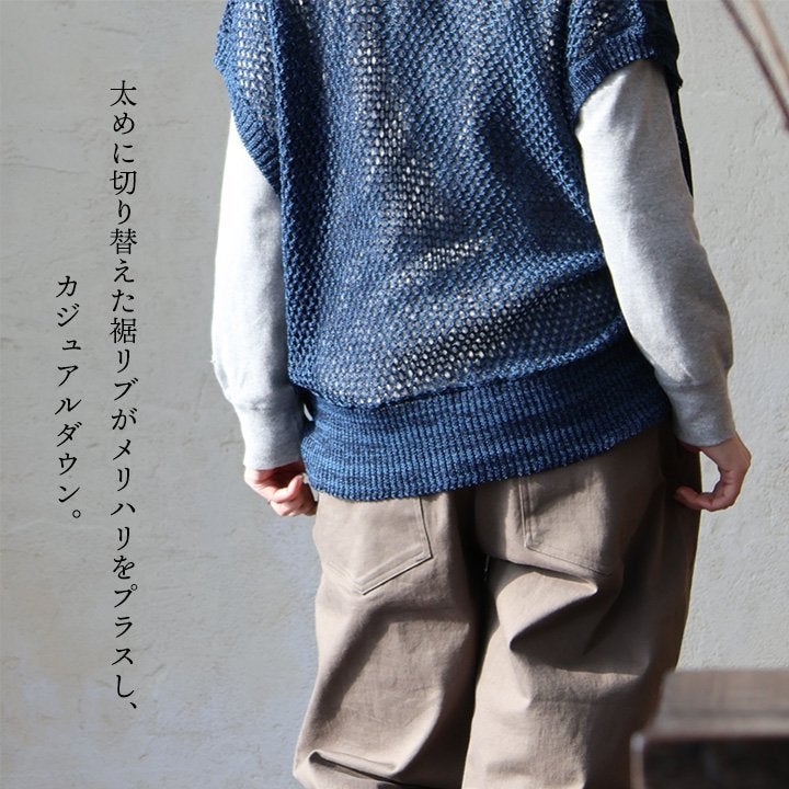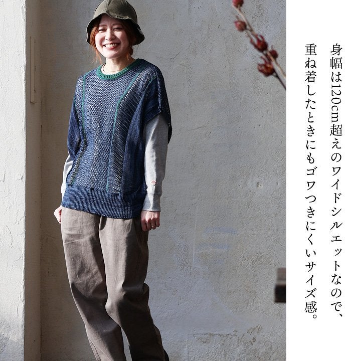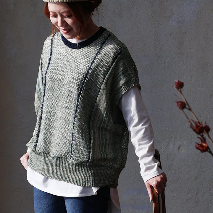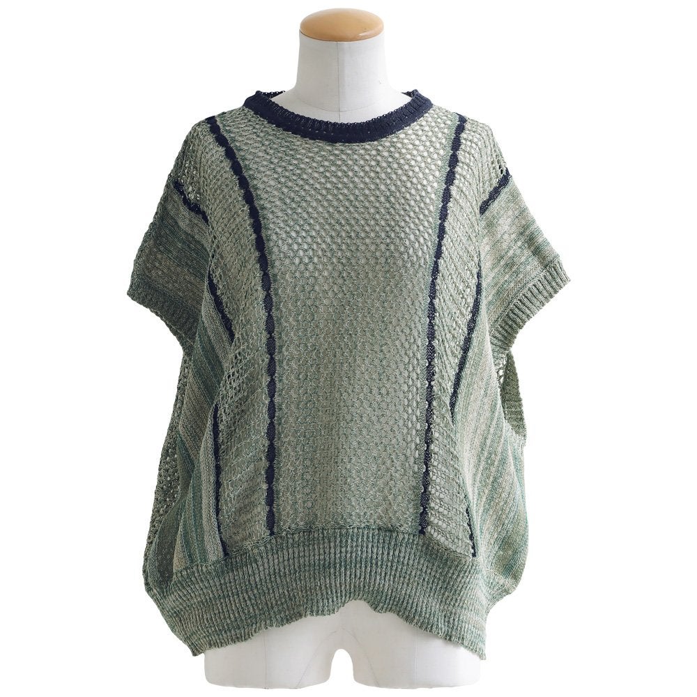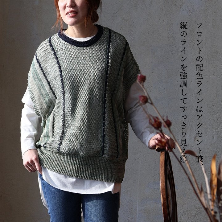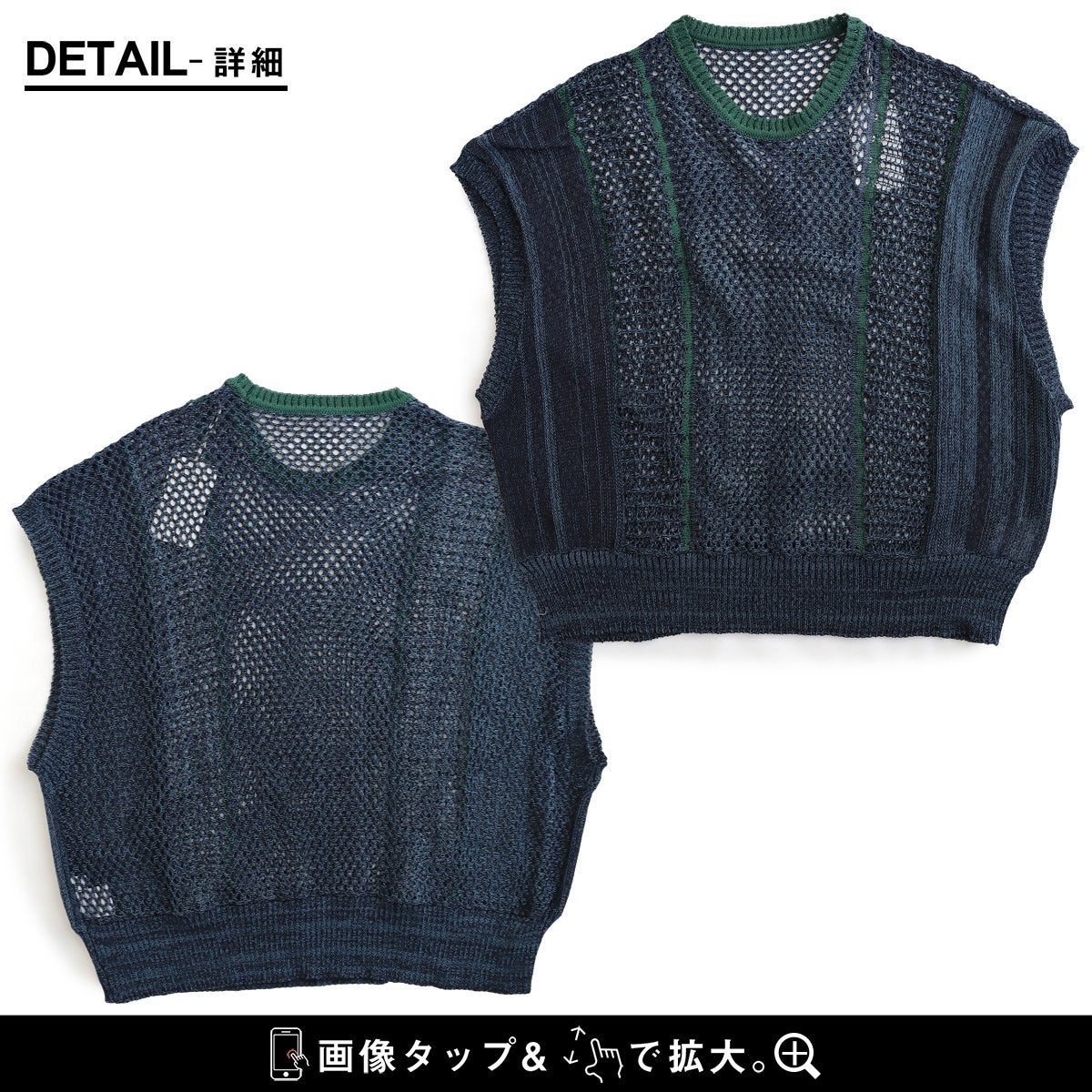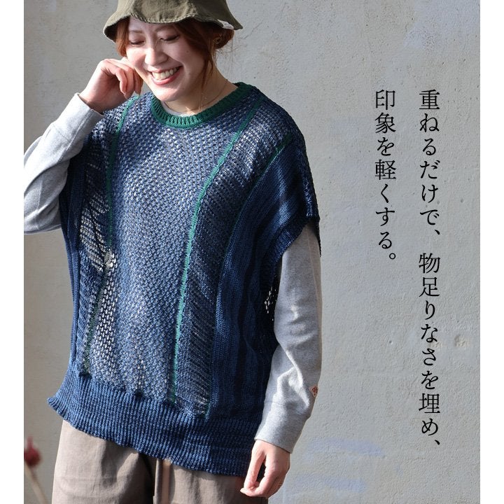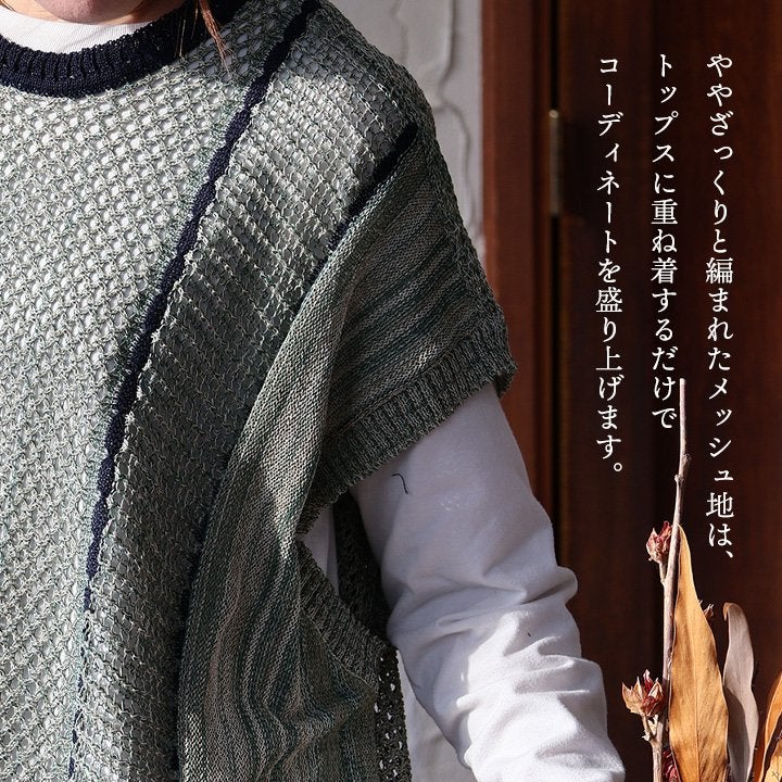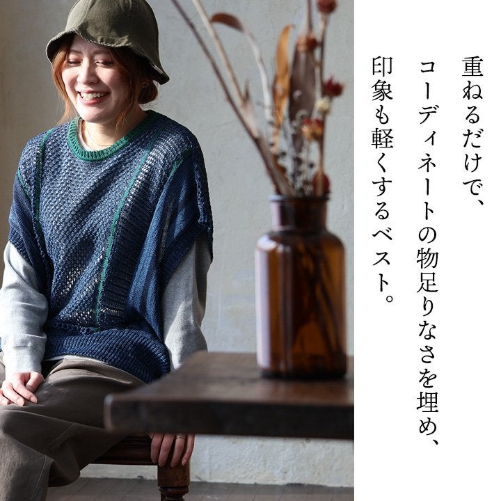 重ねるだけで、物足りなさを埋め、印象を軽くする。 ベスト レディース クルーネック フレンチスリーブ 配色 ライン 重ね着 レイヤード メッシュ 透け感 シアー 薄手 軽い ゆったり 大きいサイズ カジュアル 春 パティ GENTIL ジャンティ