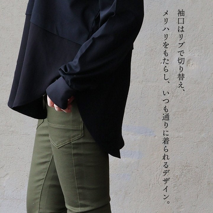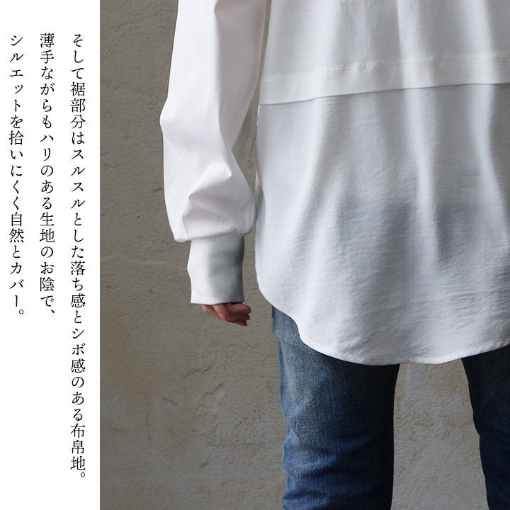 さりげない「アソビ」と「安心感」があると、心強い。 カットソー 長袖 レディース モックネック 無地 コットン 綿100 ナイロン 異素材切り替え 袖リブ ゆったり 大きいサイズ 体型カバー カジュアル 春 パティ