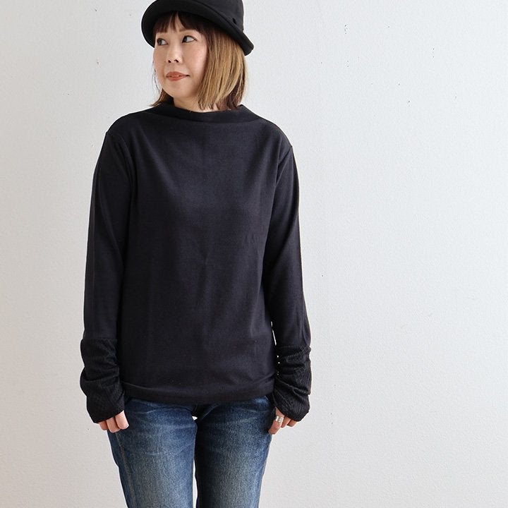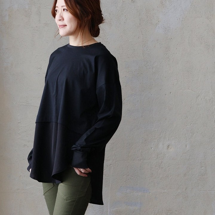 袖から漂う「レディ」な雰囲気。 KAKELA&TRANQUIL カケラ&トランクイル カットソー 長袖 レディース 重ね着 お尻隠れる 袖切り替え レース 無地 ポリエステル レーヨン 軽い 薄手 伸縮性 動きやすい カジュアル パティ