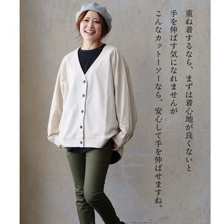 時間を重ねたような表情が、着こなしに深みを与える。 Johnbull ジョンブル スウェット 長袖 レディース Vネック 綿100 コットン ミニ裏毛 ピグメント 褪せ色 ゆったり 大きいサイズ 重ね着 カジュアル ヴィンテージ パティ