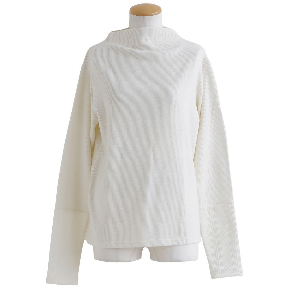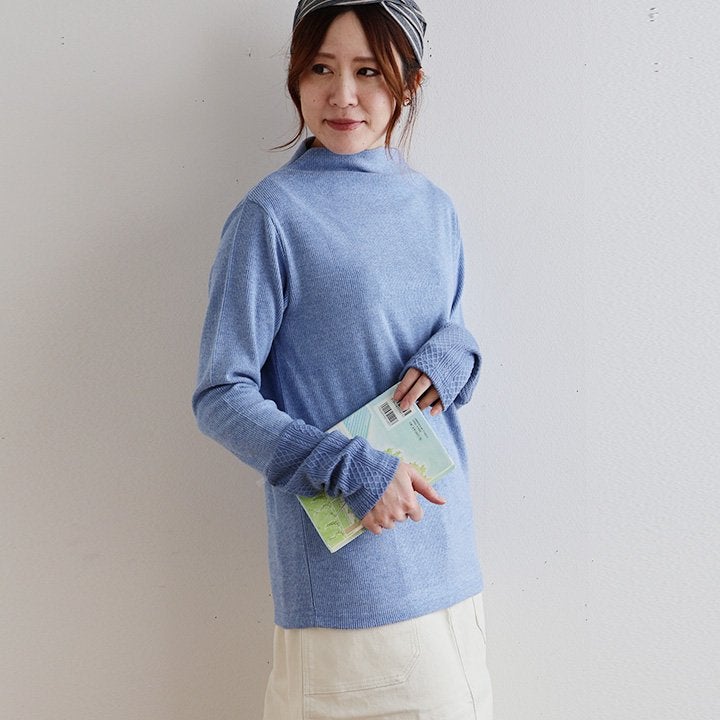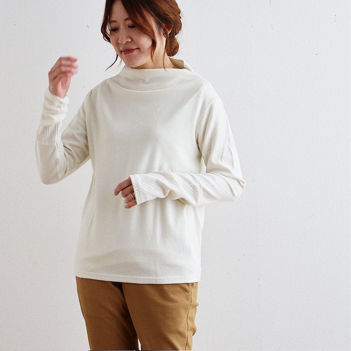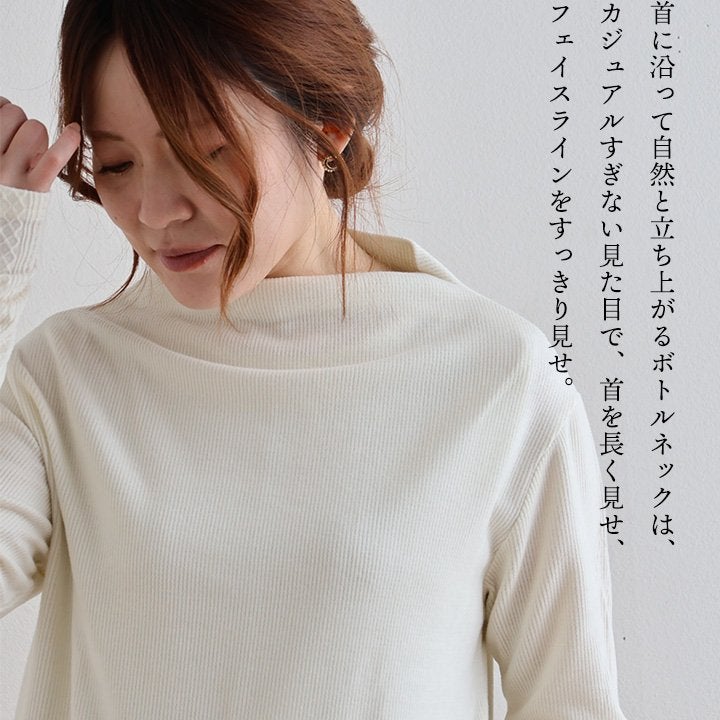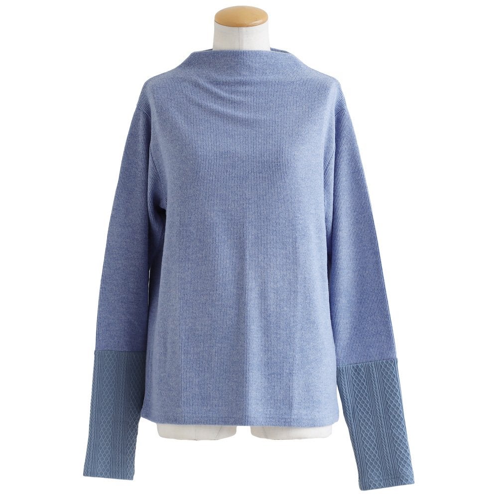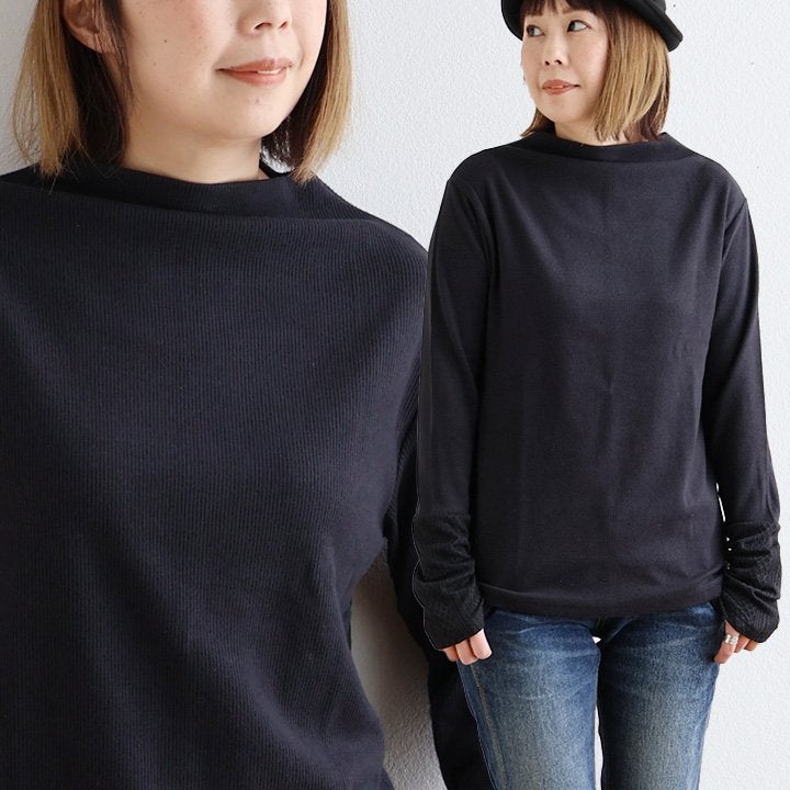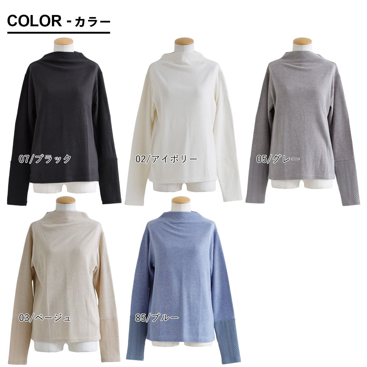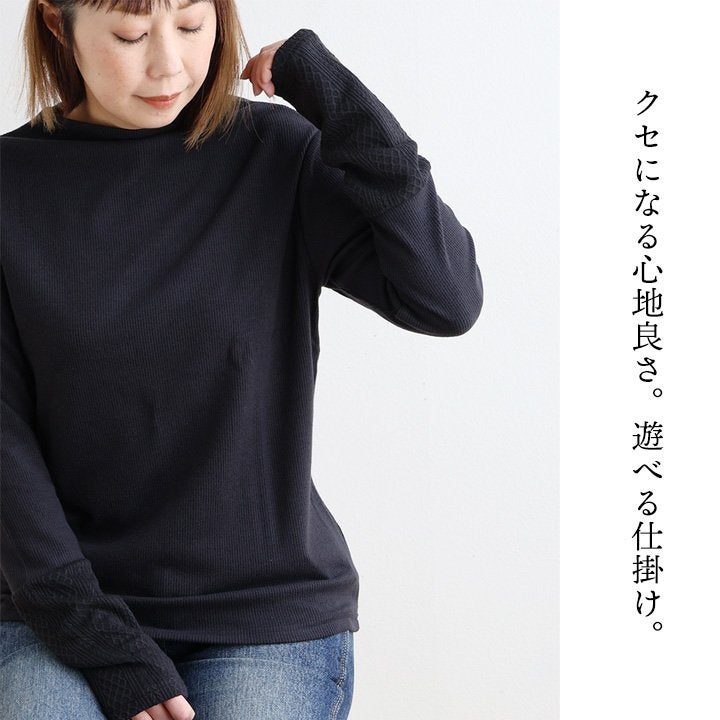 クセになる心地良さ。遊べる仕掛け。 カットソー 長袖 レディース ボトルネック リブ 異素材切り替え ジャガード織り 無地 伸縮性 重ね着 ゆったり カジュアル パティ