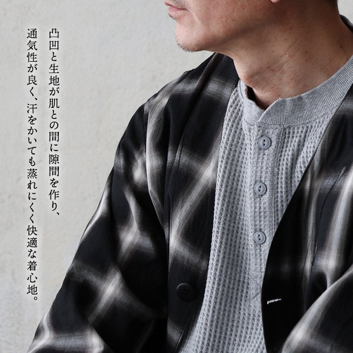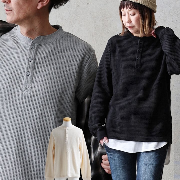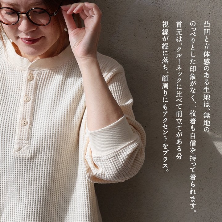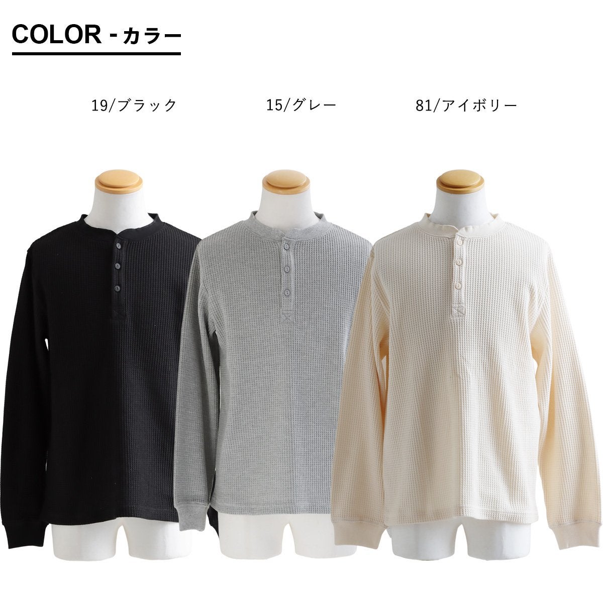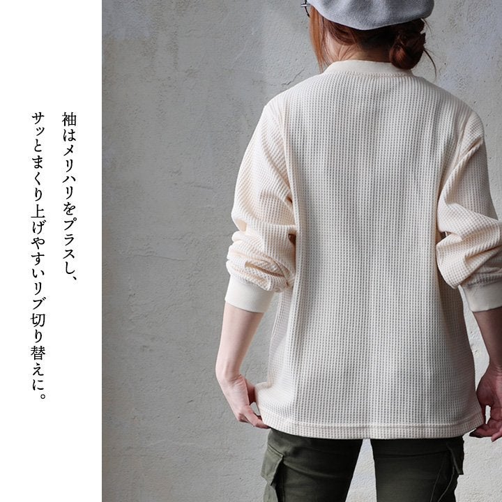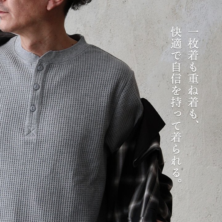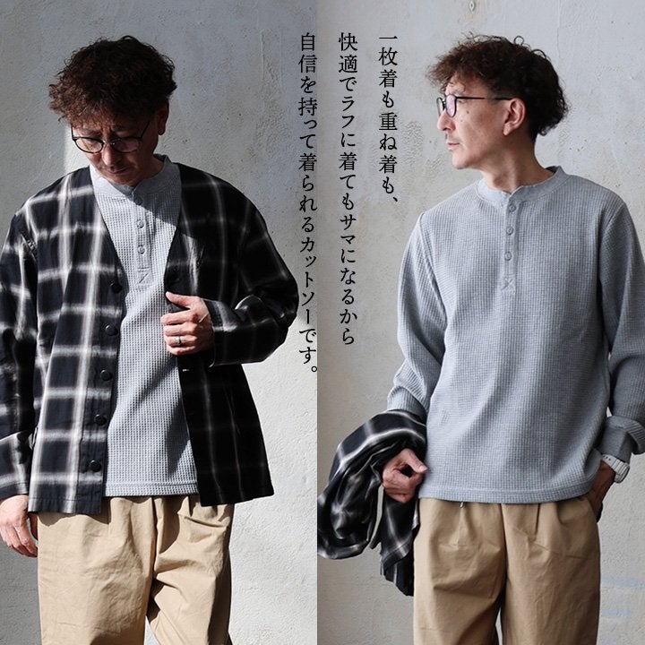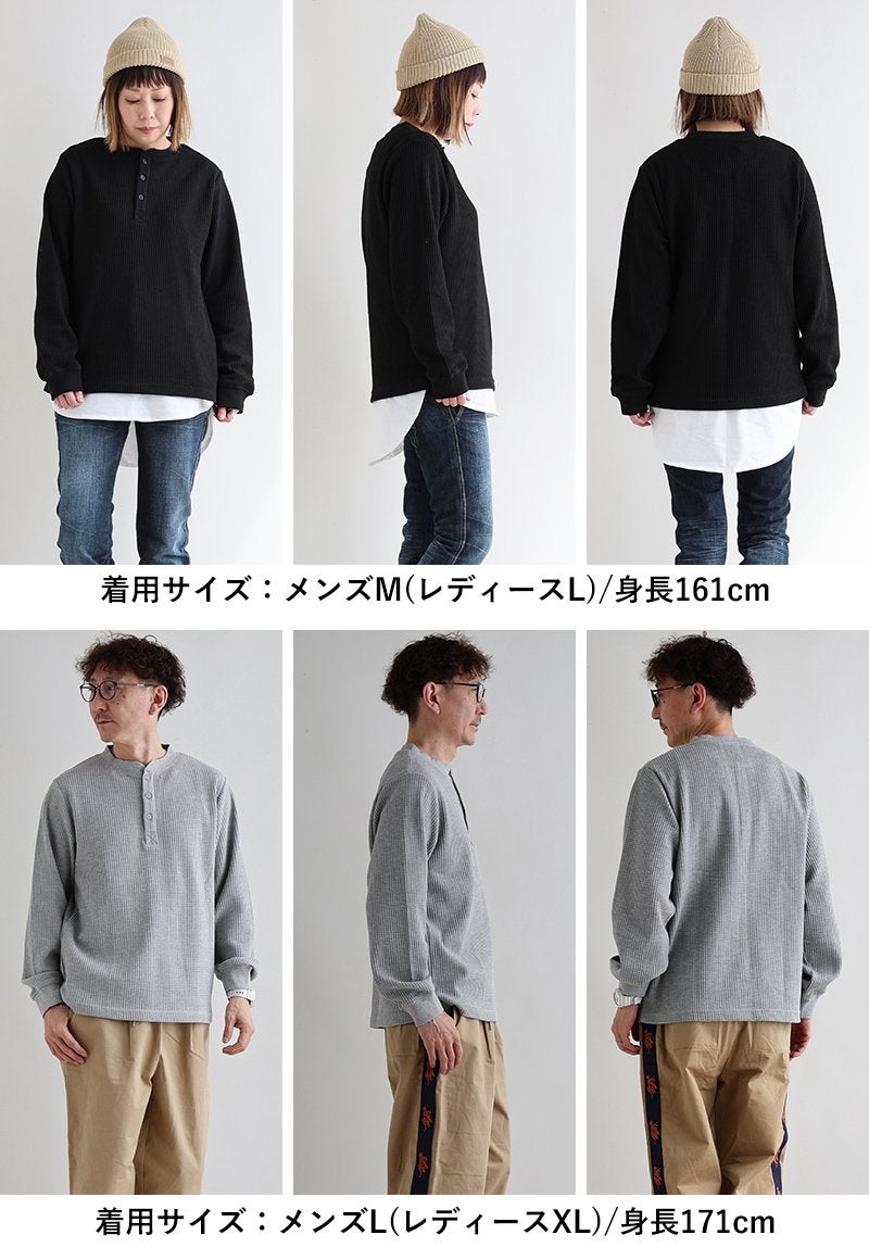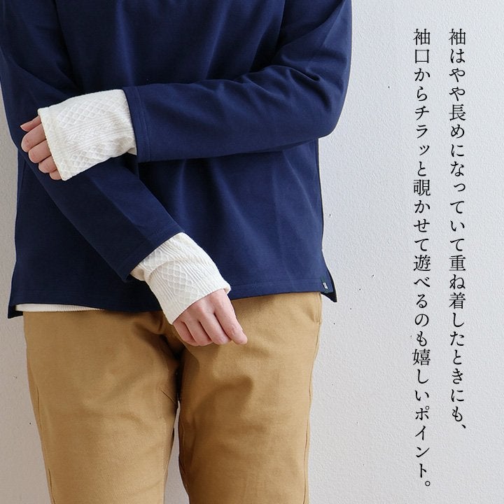 一枚着も重ね着も、快適で自信を持って着られる。 カットソー 長袖 メンズ レディース ヘンリーネック コットン ポリエステル しっかり生地 ハリ 伸縮性 袖リブ ボックスシルエット カジュアル パティ