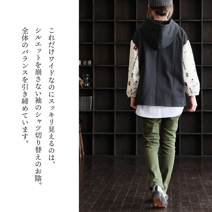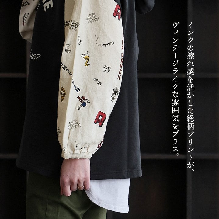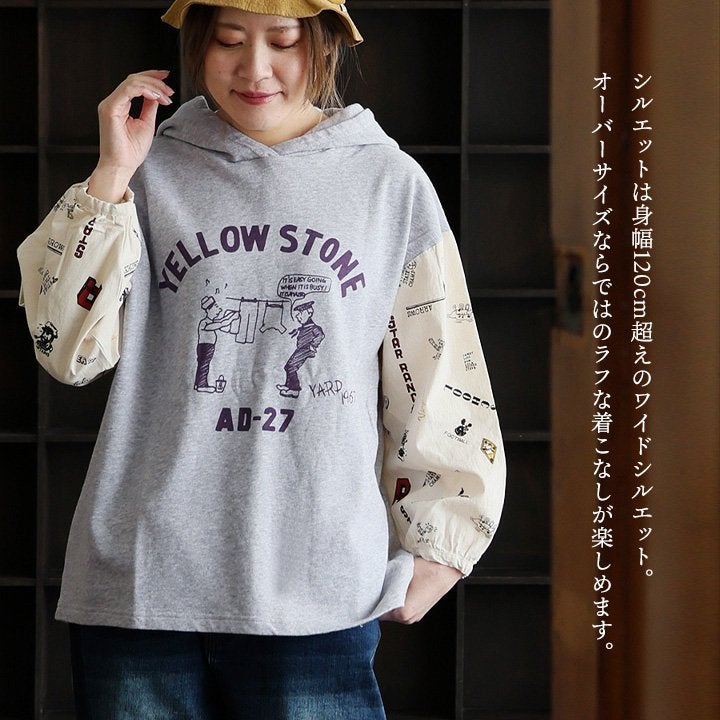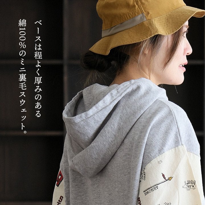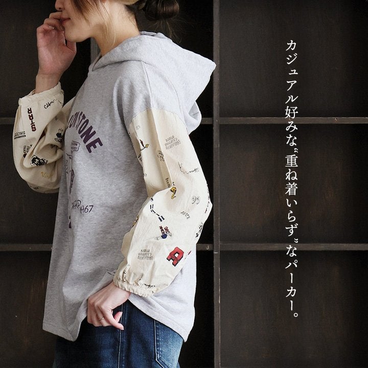 カジュアル好みな“重ね着いらず”なパーカー。 パーカー プルオーバー レディース 長袖 リメイク プリント カレッジ 総柄 シャツ 古着 重ね着 カジュアル 大きいサイズ ゆったり パティ