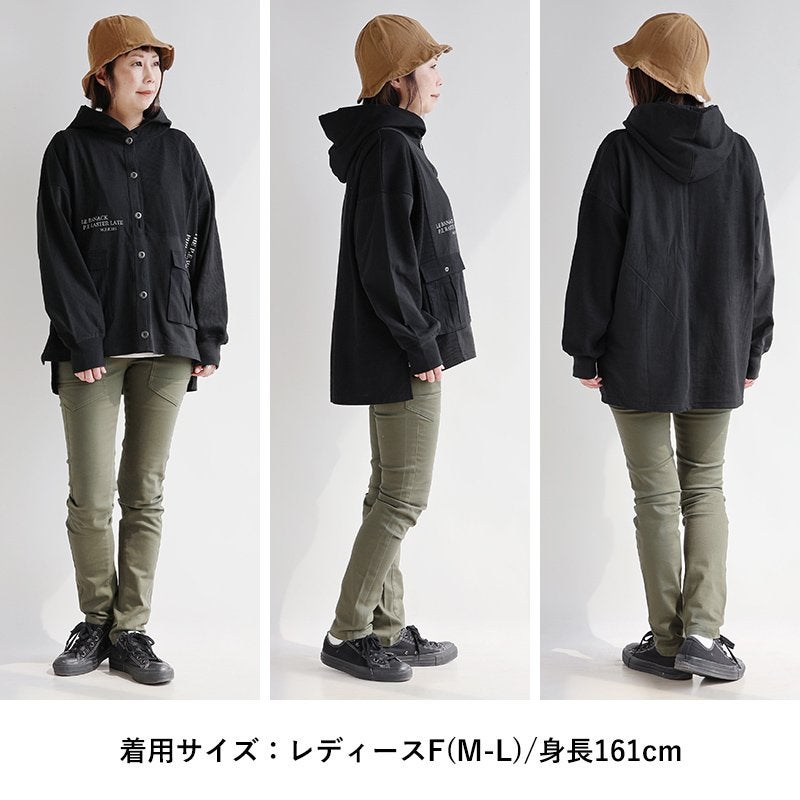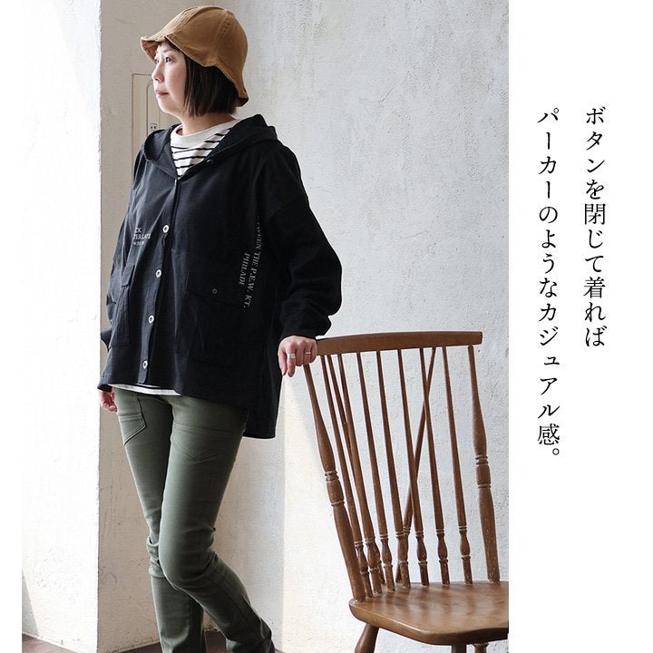 いつも通りに着られて、軽やかで涼しい夏のカジュアルシャツ。 シャツ 長袖 レディース スキッパーネック フード付き 薄手 軽い 涼しい 綿100 コットン 褪せ色 ピグメント 無地 ワンポイント 袖リブ 大きいサイズ 体型カバー カジュアル パティ