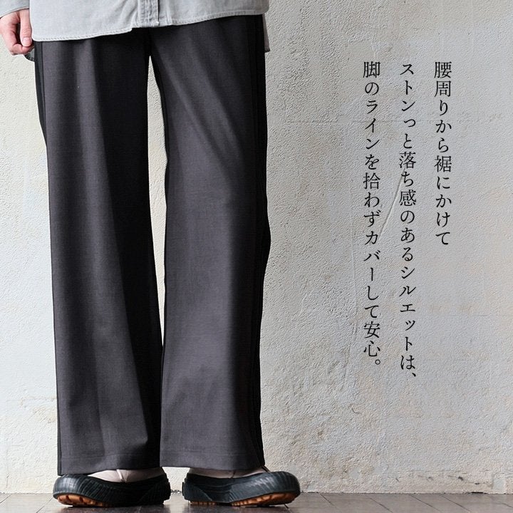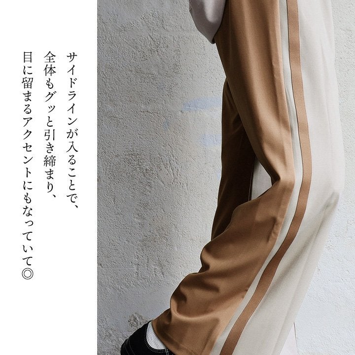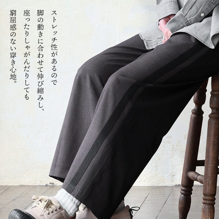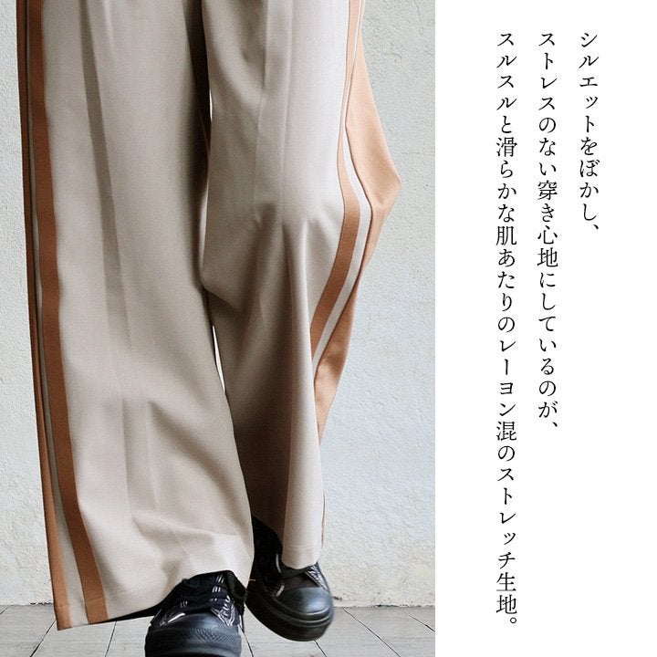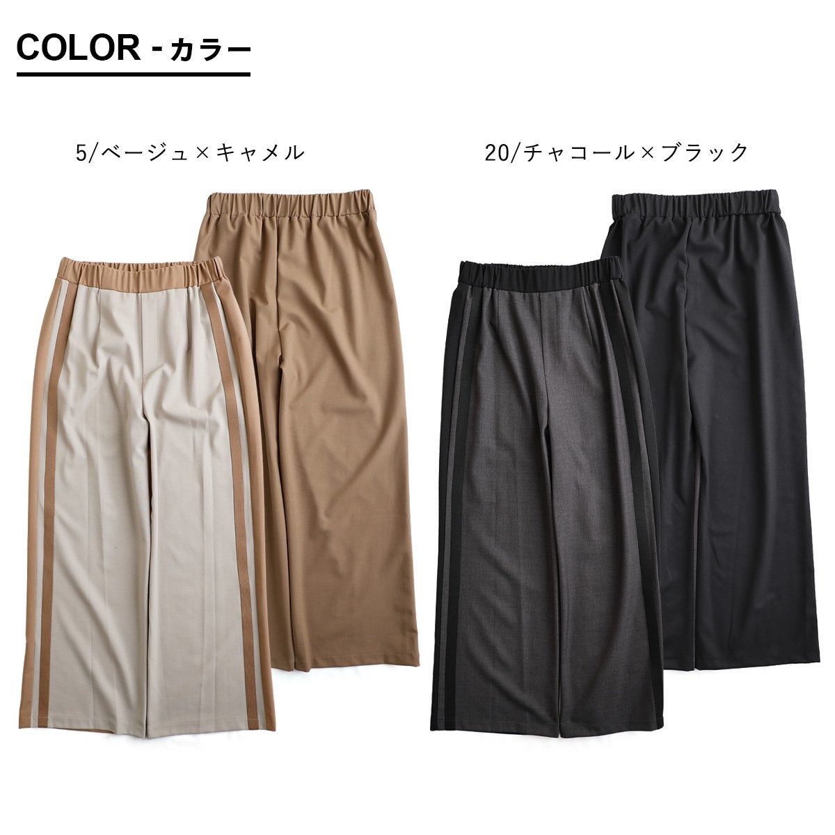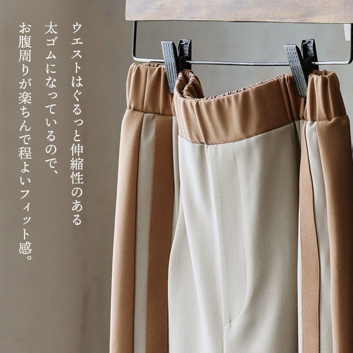 「陰影」がもたらすいつもとは違う定番柄。 パンツ ワイド ストレート レディース ストライプ 配色 綿100 コットン 薄手 軽い 通気性 ウエストゴム ゆったり 大きいサイズ カジュアル パティ
