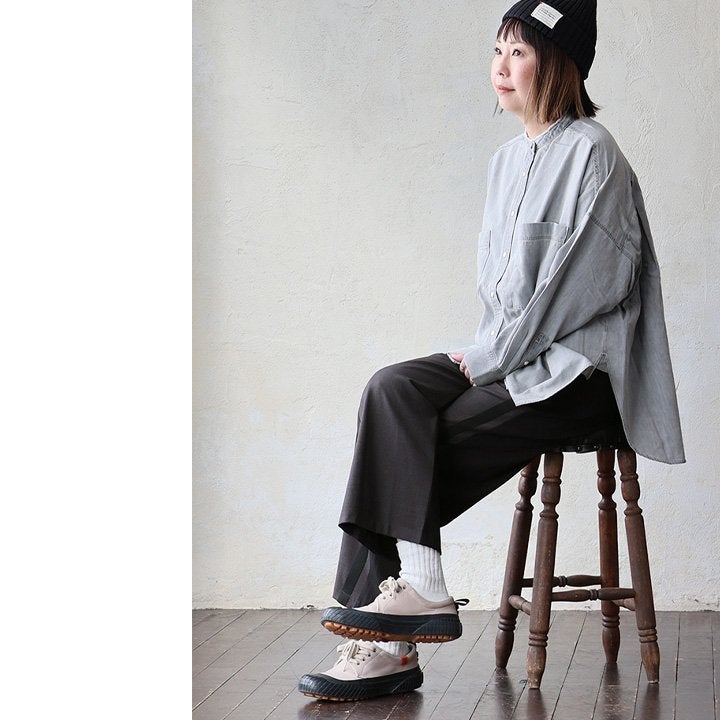 一枚着も重ね着も、快適で自信を持って着られる。 カットソー 長袖 メンズ レディース ヘンリーネック コットン ポリエステル しっかり生地 ハリ 伸縮性 袖リブ ボックスシルエット カジュアル パティ
