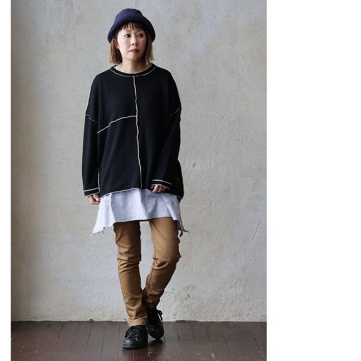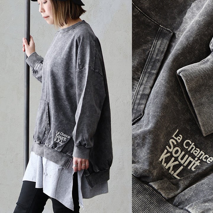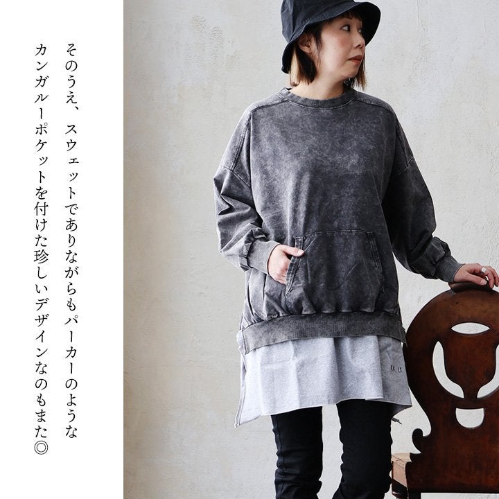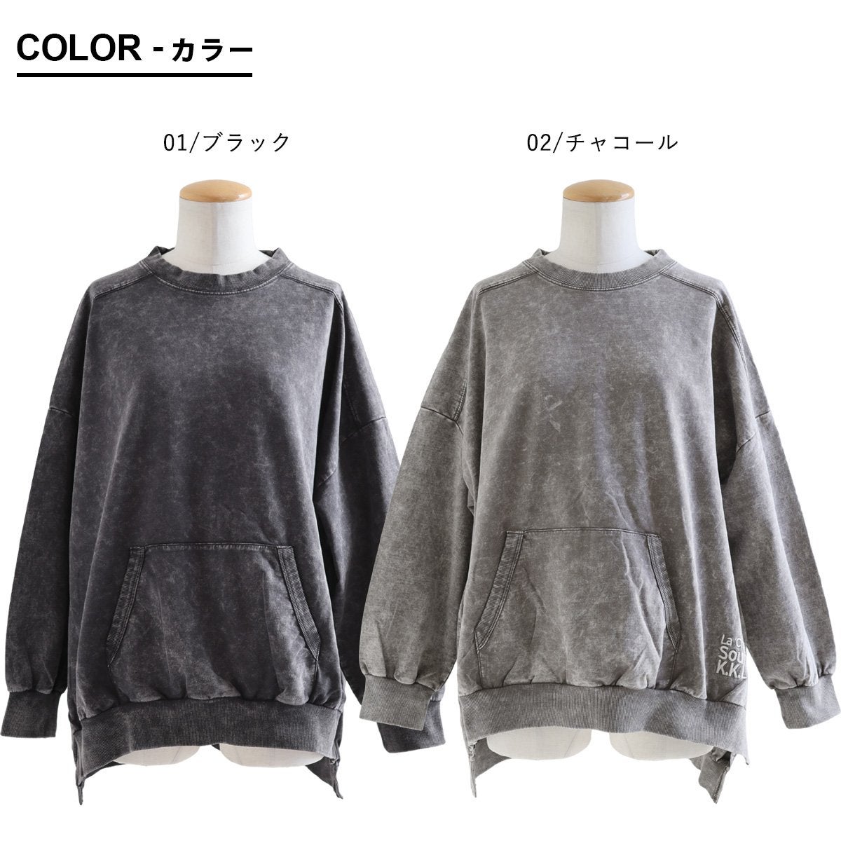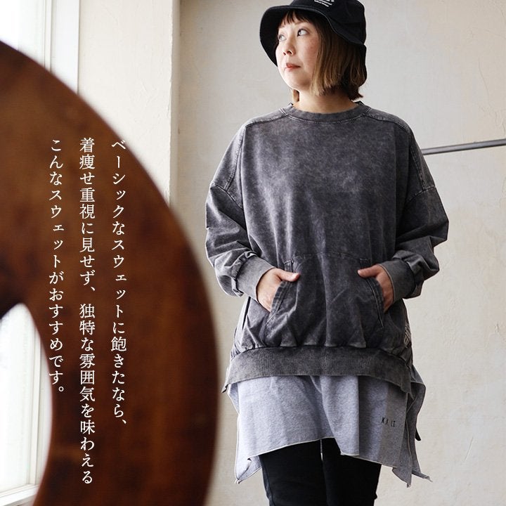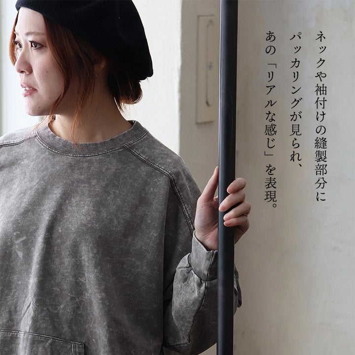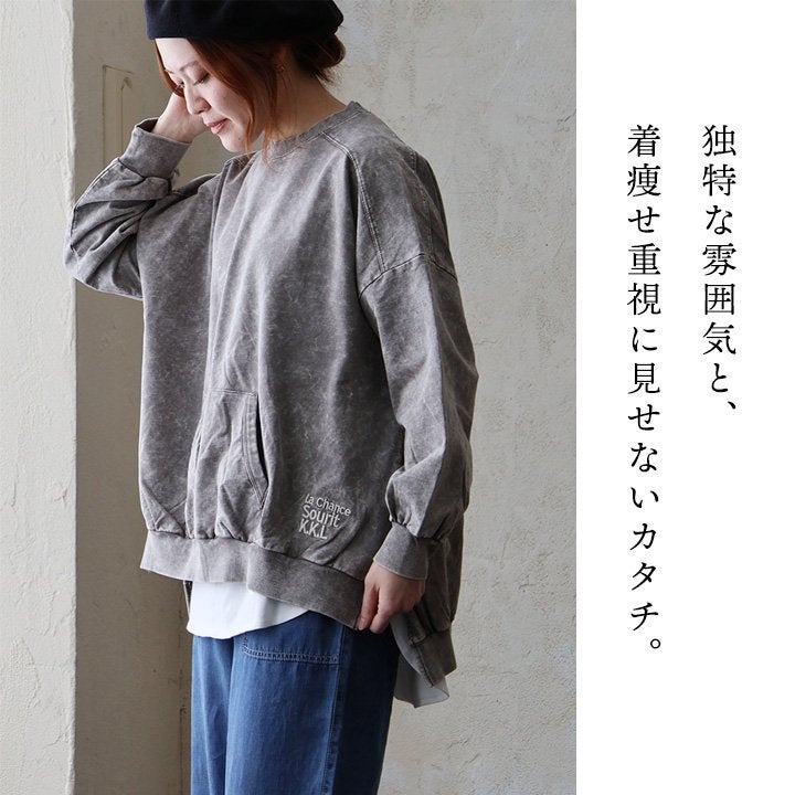 スウェットとは違った、ラフさと存在感。 KAKELA&TRANQUIL カケラ&トランクイル スウェット 長袖 レディース クルーネック 褪せ色 ピグメント アウトステッチ リメイク風 綿100 コットン ミニ裏毛 大きいサイズ 体型カバー カジュアル 秋 冬 春 パティ