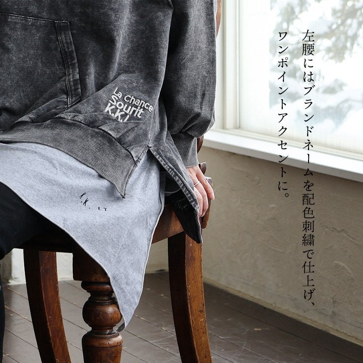 「定番」と『遊び』のグッドバランス。 KAKELA&TRANQUIL カケラ&トランクイル パーカー 長袖 レディース プルオーバー フーディ プリント 裏毛 ミニ裏毛 リメイク風 カットオフ ワイド ゆったり 着痩せ カジュアル アメカジ パティ