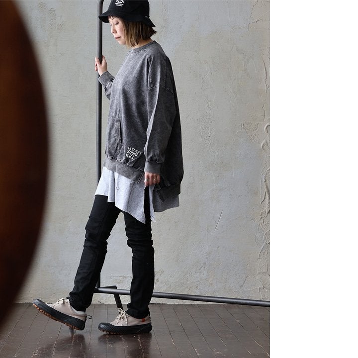 風合いと統一感で魅せる。 KAKELA&TRANQUIL カケラ&トランクイル スウェット トレーナー 長袖 レディース クルーネック ロゴワッペン ピグメント 綿100 コットン ミニ裏毛 ゆったり 大きいサイズ 体型カバー カジュアル ヴィンテージ パティ