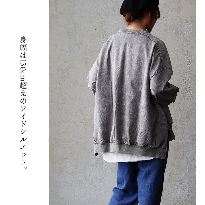 時間を重ねたような表情が、着こなしに深みを与える。 Johnbull ジョンブル スウェット 長袖 レディース Vネック 綿100 コットン ミニ裏毛 ピグメント 褪せ色 ゆったり 大きいサイズ 重ね着 カジュアル ヴィンテージ パティ
