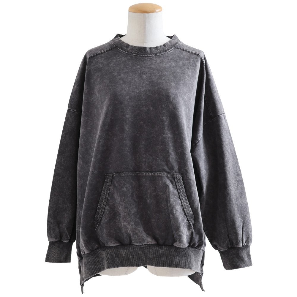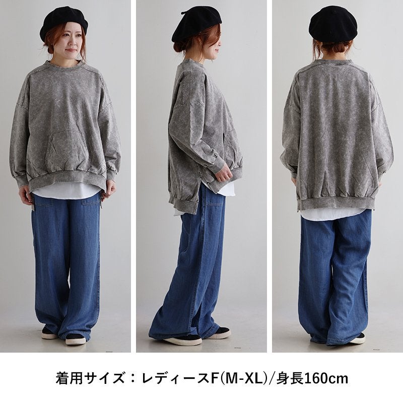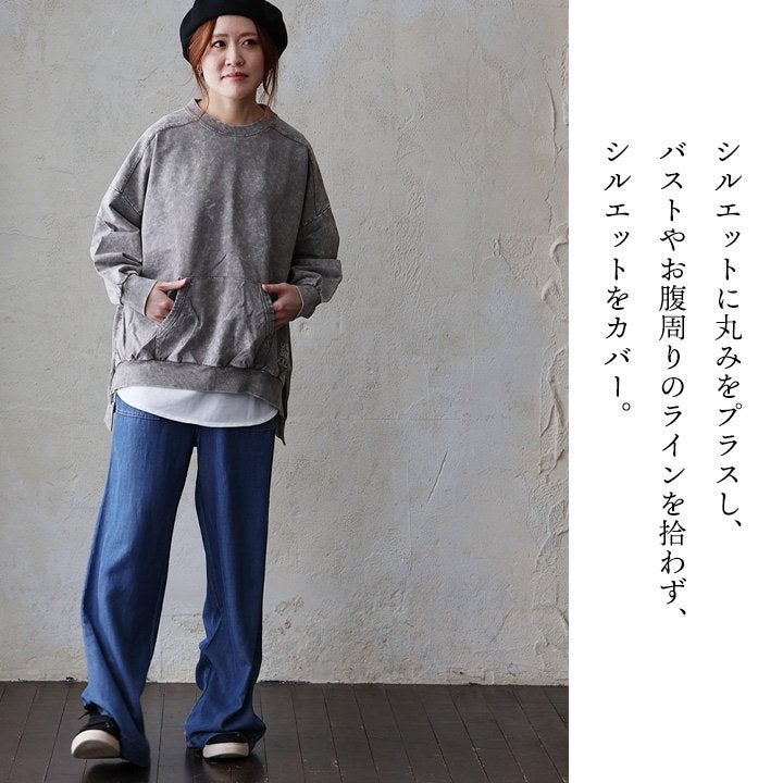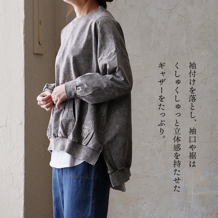 独特な雰囲気と、着痩せ重視に見せないカタチ。 KAKELA&TRANQUIL カケラ&トランクイル スウェット 長袖 レディース クルーネック 褪せ色 ピグメント 綿100 コットン 裏毛 軽い ギャザー 体型カバー 秋 冬 春 カジュアル パティ