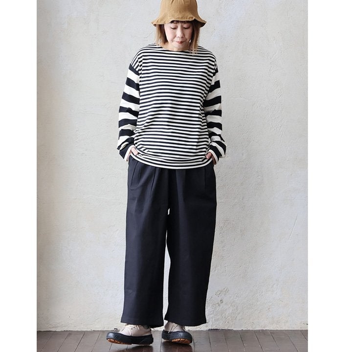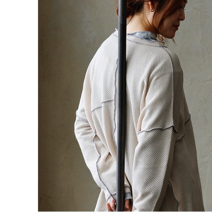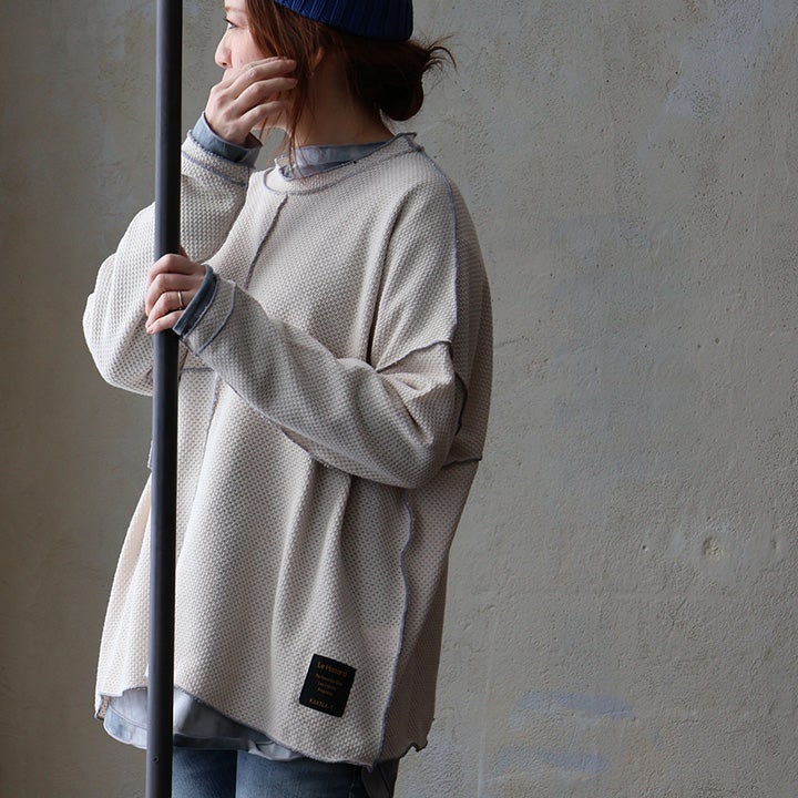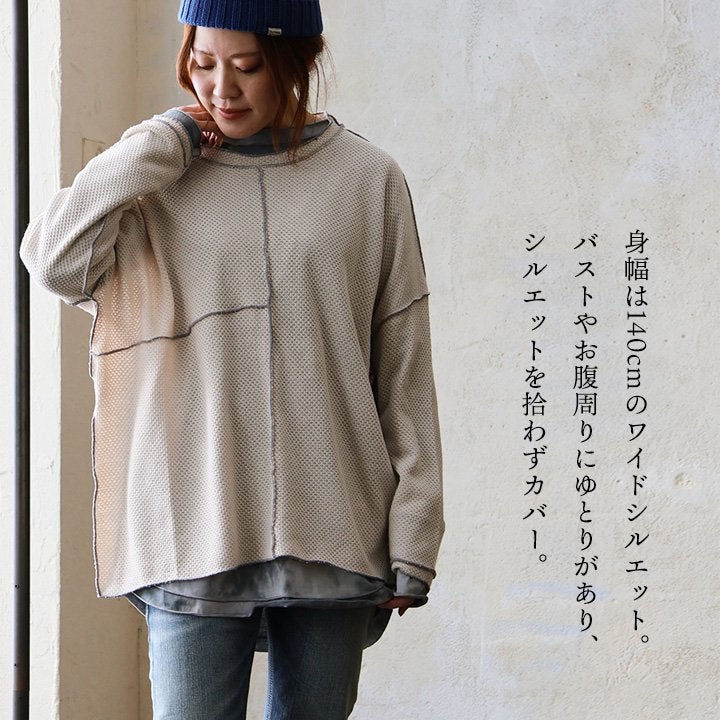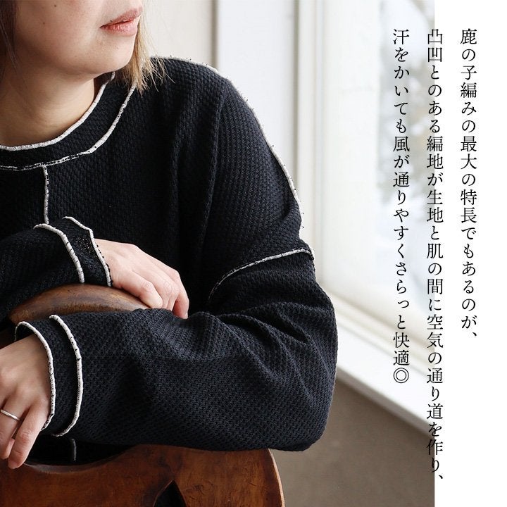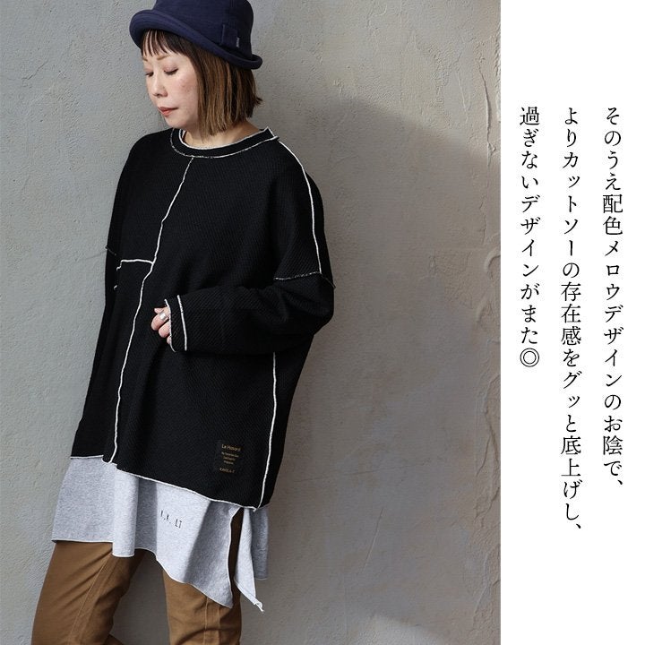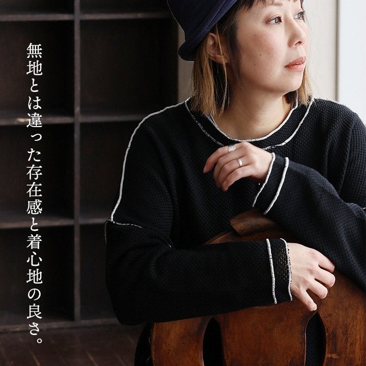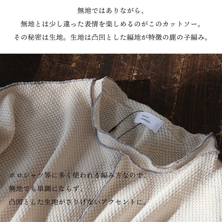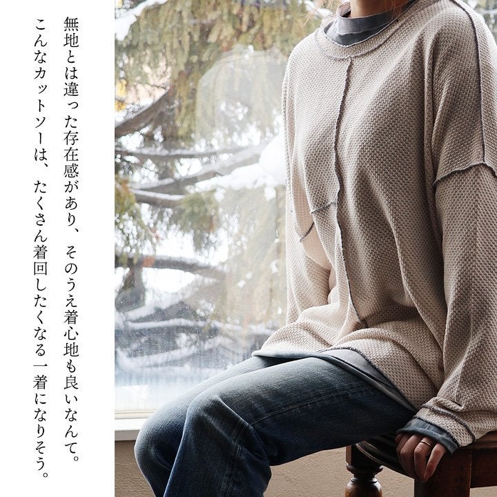 無地とは違った存在感と着心地の良さ。 KAKELA&TRANQUIL カケラ&トランクイル カットソー 長袖 レディース クルーネック 無地 配色 メロウ 鹿の子 伸縮性 ワンポイント ゆったり 大きいサイズ 体型カバー カジュアル 秋 冬 春 パティ