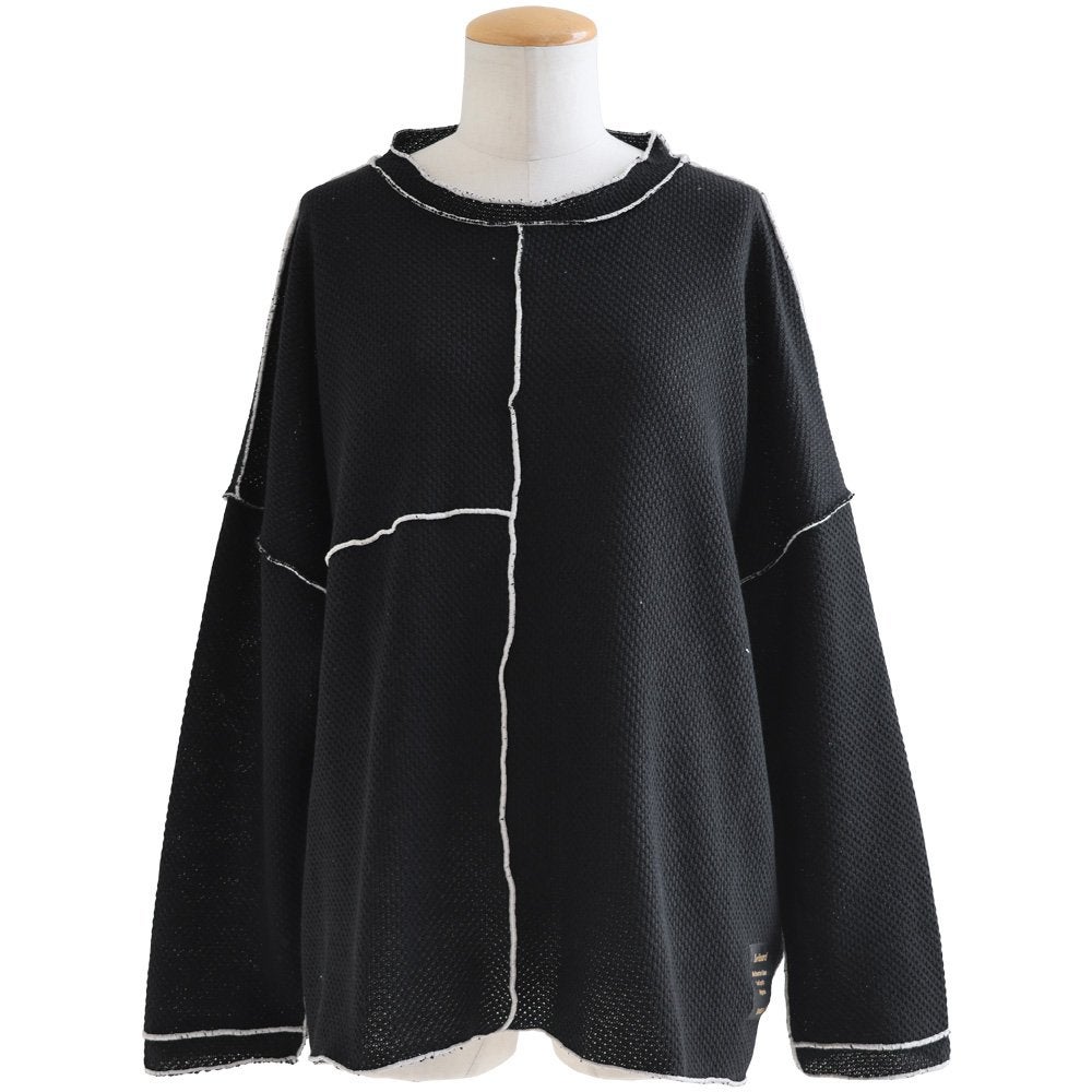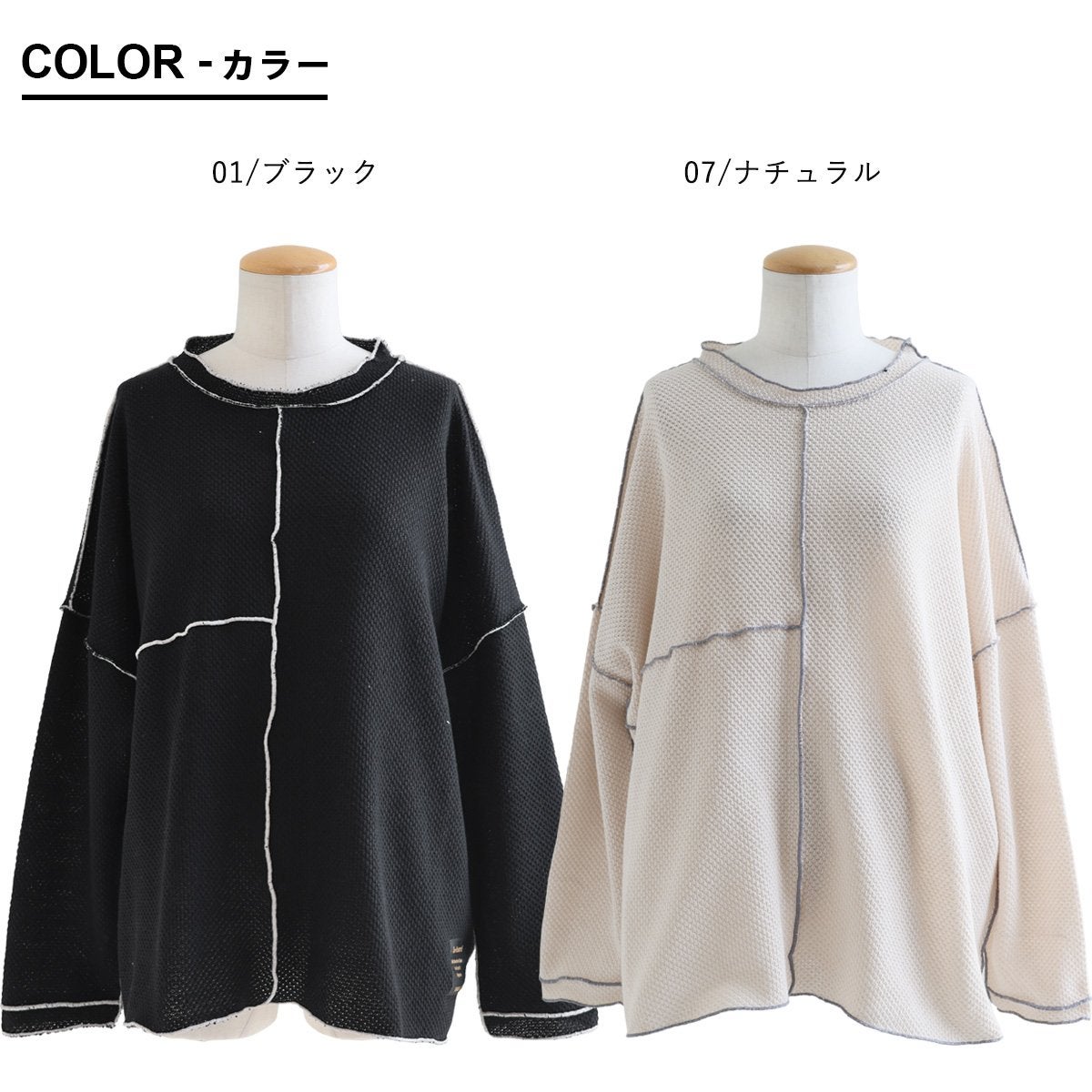 クセになる心地良さ。遊べる仕掛け。 カットソー 長袖 レディース ボトルネック リブ 異素材切り替え ジャガード織り 無地 伸縮性 重ね着 ゆったり カジュアル パティ