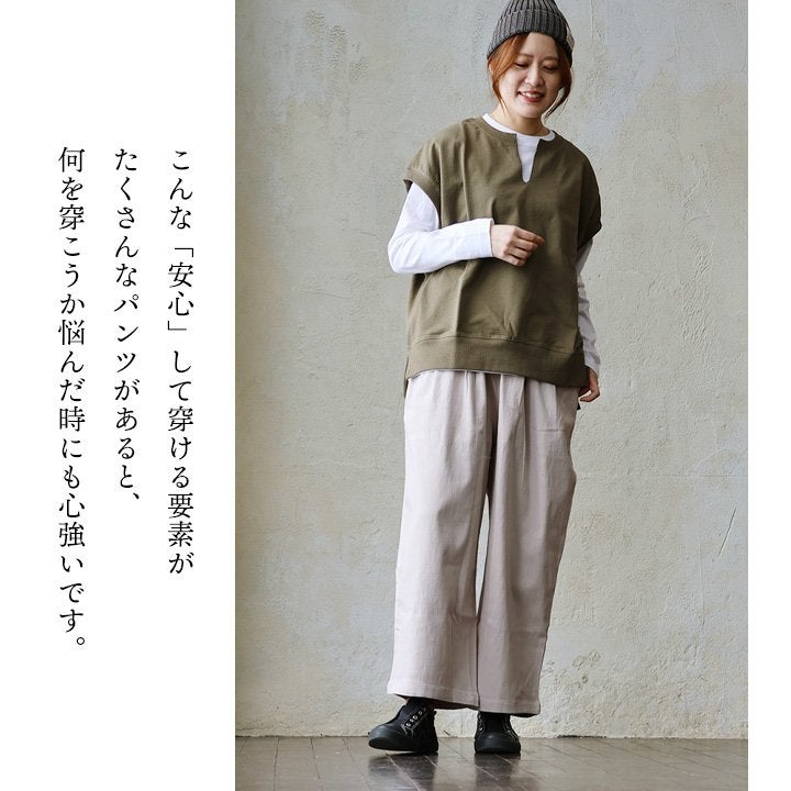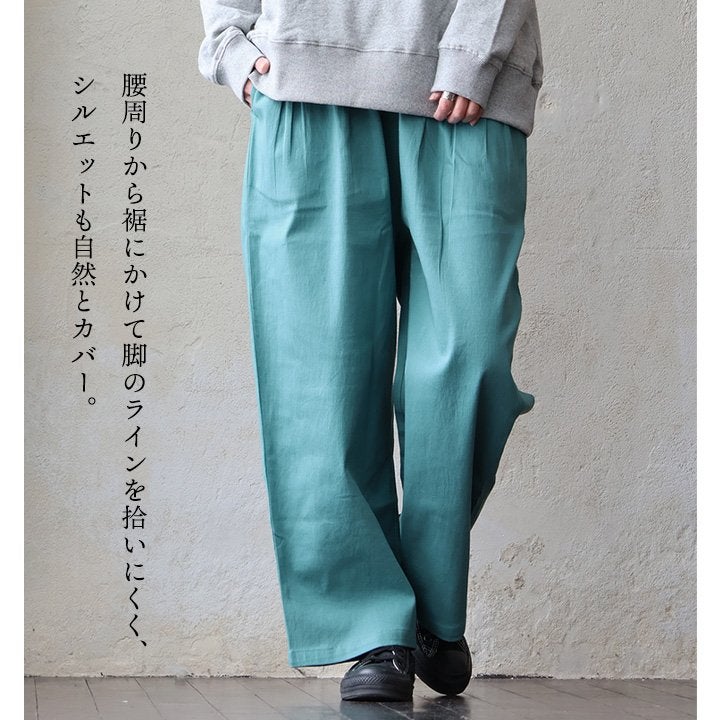 「安心」して穿ける要素がたくさん。 パンツ ワイドパンツ ストレート 無地 ストレッチ ライクラ コットン ストレッチ ウエストゴム ゆったり 体型カバー カジュアル パティ