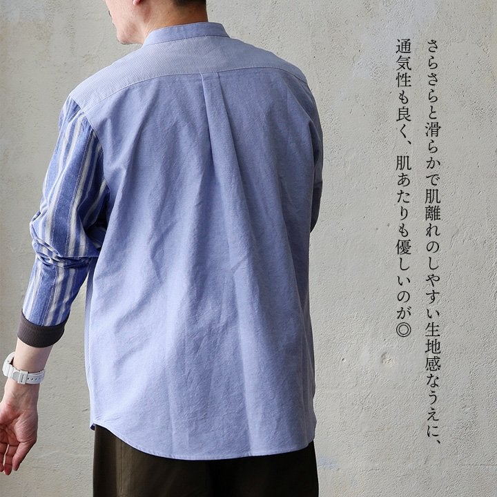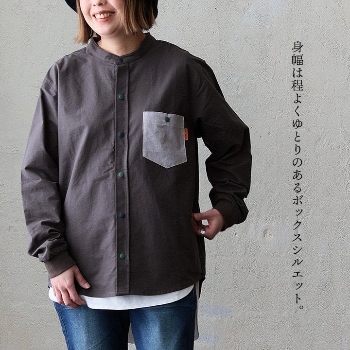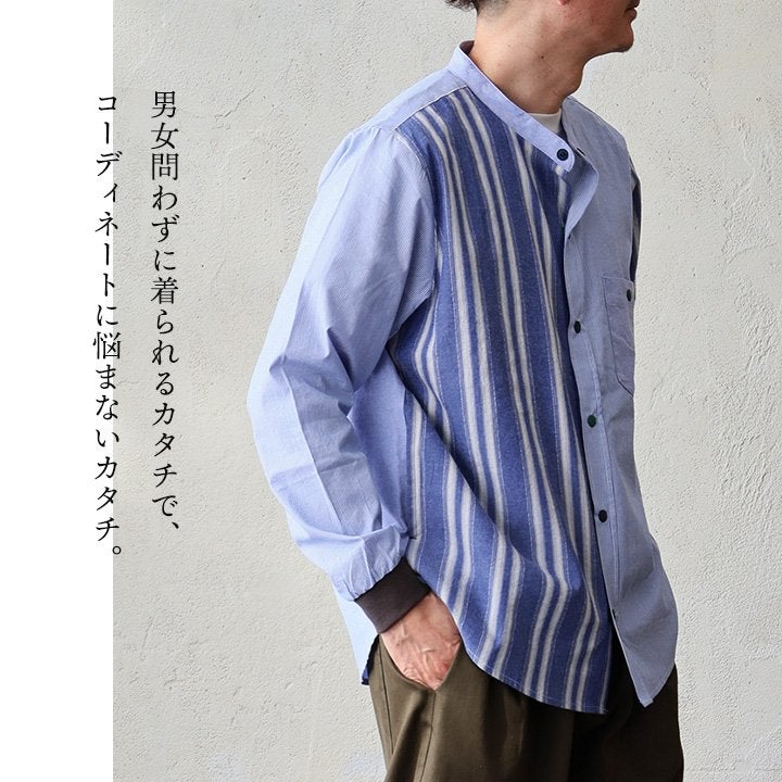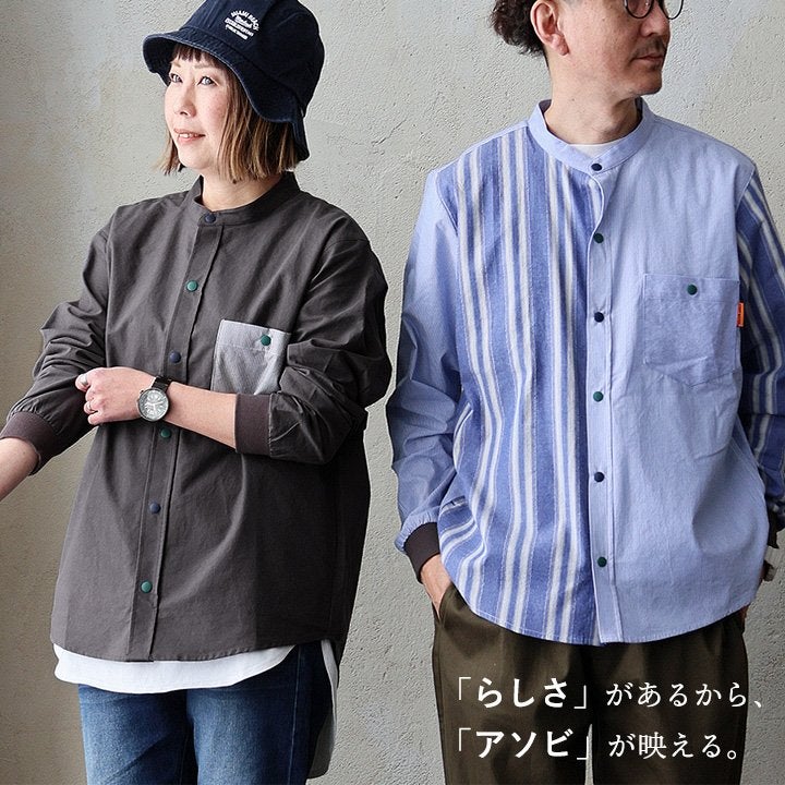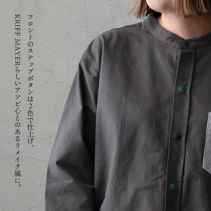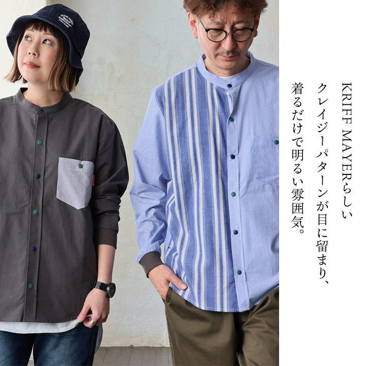 「らしさ」があるから、「アソビ」が映える。 KRIFF MAYER クリフメイヤー シャツ 長袖 メンズ レディース バンドカラー 無地 ストライプ 配色 綿100 コットン 袖リブ 大きいサイズ カジュアル 春 パティ