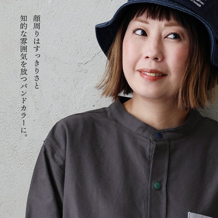軽やかで、シルエットカバーまでこなす、カジュアル派好みのデニムシャツ。 シャツ デニムシャツ 長袖 レディース バンドカラー カットオフ セルロース デニム コットン 軽い 薄手 ゆったり 大きいサイズ お尻隠れる 春 カジュアル パティ