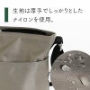 やや硬めで密度高くしっかりと織り込んだナイロン生地です。光沢のある生地で、撥水します。伸縮性・透け感はありません。