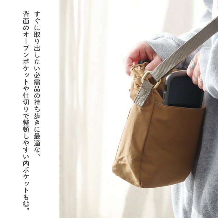 他の画像を見る シュっと閉まって、コロンとかわいい。 ショルダーバッグ バッグ レディース 巾着型 ファインポリエステル 撥水 長財布 スマートフォン収納 2~3L容量 レザーアクセント カジュアル シンプル 2~3日でお届け 販売価格 ¥ 7,150 税込 在庫切れ カートに入れる お気に入りに登録する
