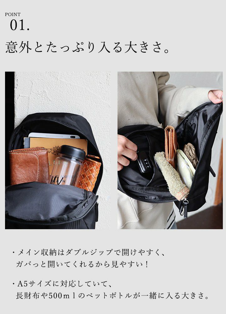 他の画像を見る フィットしてくれて、いつでも身軽。 Legato Largo レガートラルゴ ボディバッグ ショルダーバッグ バッグ カバン ミニバッグ レディース ナイロン 無地 撥水 丈夫 軽い お出かけ 旅行 買い物 カジュアル PATY パティ 2~3日でお届け 販売価格 ¥ 4,290 税込 在庫切れ カートに入れる お気に入りに登録する