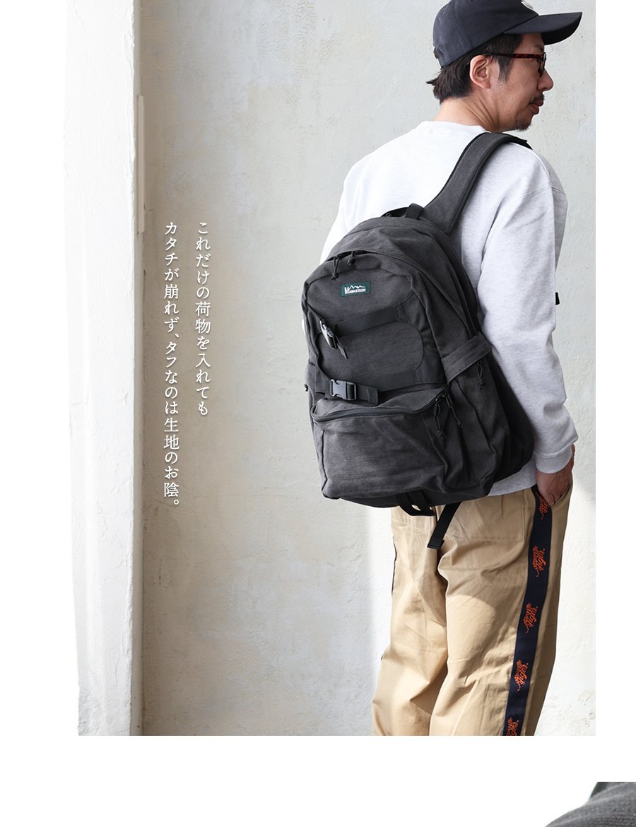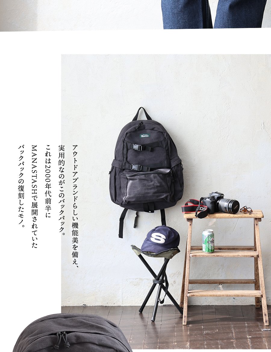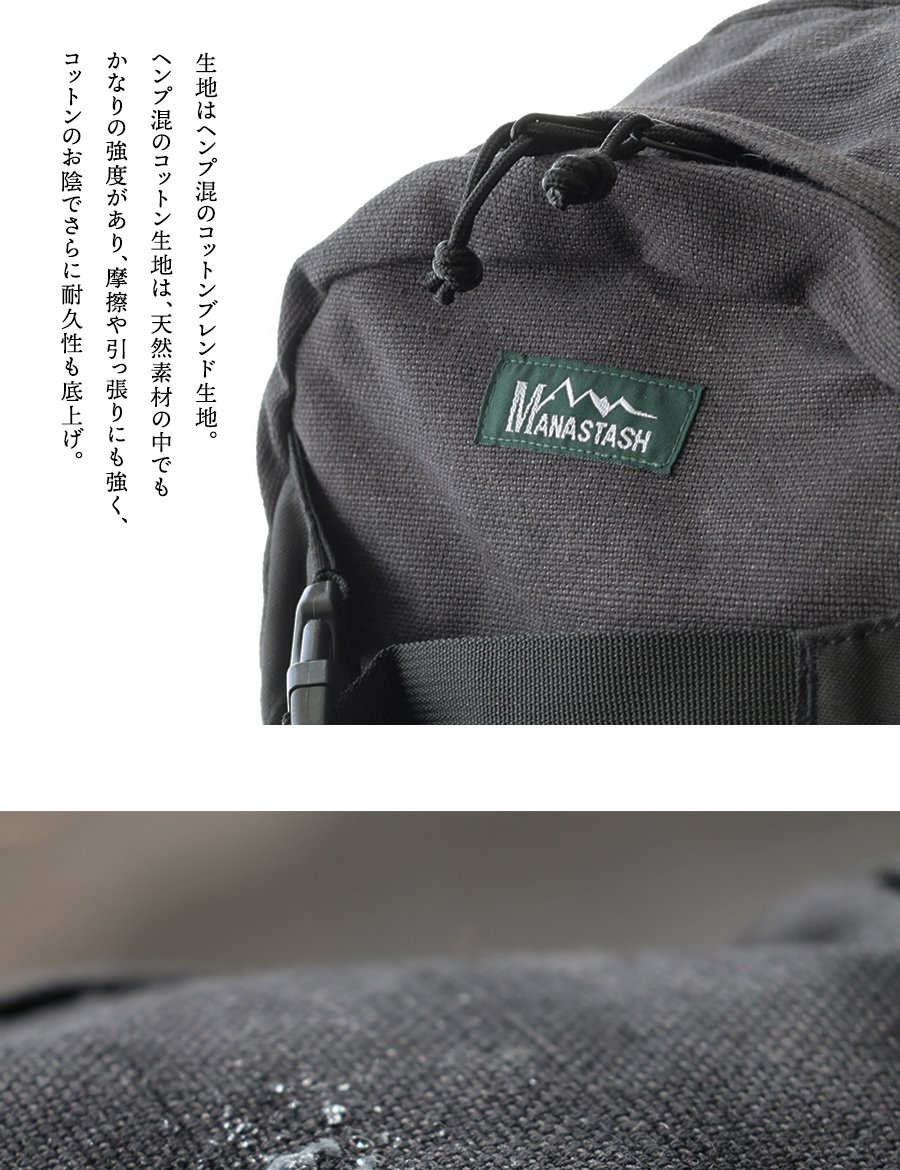 アウトドアブランドらしい機能美と実用性。 MANASTASH マナスタッシュ リュック バックパック メンズ レディース 無地 コットン ヘンプ ワンポイント しっかり生地 タフ A4サイズ PCポケット 多収納 たくさん入る カジュアル アウトドア パティ