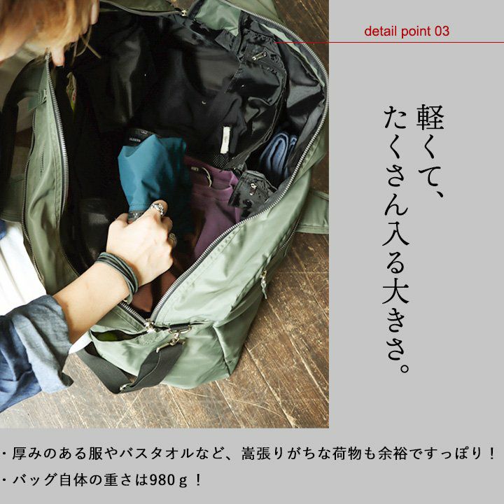 他の画像を見る 荷物が多くても平気。旅行に頼れる大容量。 ボストンバッグ 大容量 入れやすい 出しやすい 撥水 高密度ナイロン 丈夫 肩 楽 軽い クッションパッド 背面ポケット 三泊四日 旅行 2~3日でお届け 販売価格 ¥ 11,000 税込 在庫切れ カートに入れる お気に入りに登録する