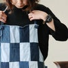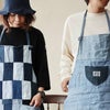 厚手でしっかりとした生地感ながらもリサイクルデニムならではのくたっとした柔らかさもあるエプロンです。どちらの面も使用できるリバーシブルアイテムになっています。