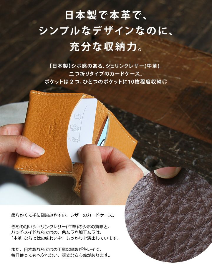 他の画像を見る 日本製で本革で、シンプルなデザインなのに、充分な収納力。 カードケース 名刺入れ 二つ折り シュリンクレザー 本革 シボ感 ハンドメイドデザイン 日本製 折りたたみ キャメル ブラウン ブラック 定期入れ パスケース 20枚 camino [カミノ] 販売価格 ¥ 4,180 税込 在庫切れ 詳細を見る お気に入りに登録する
