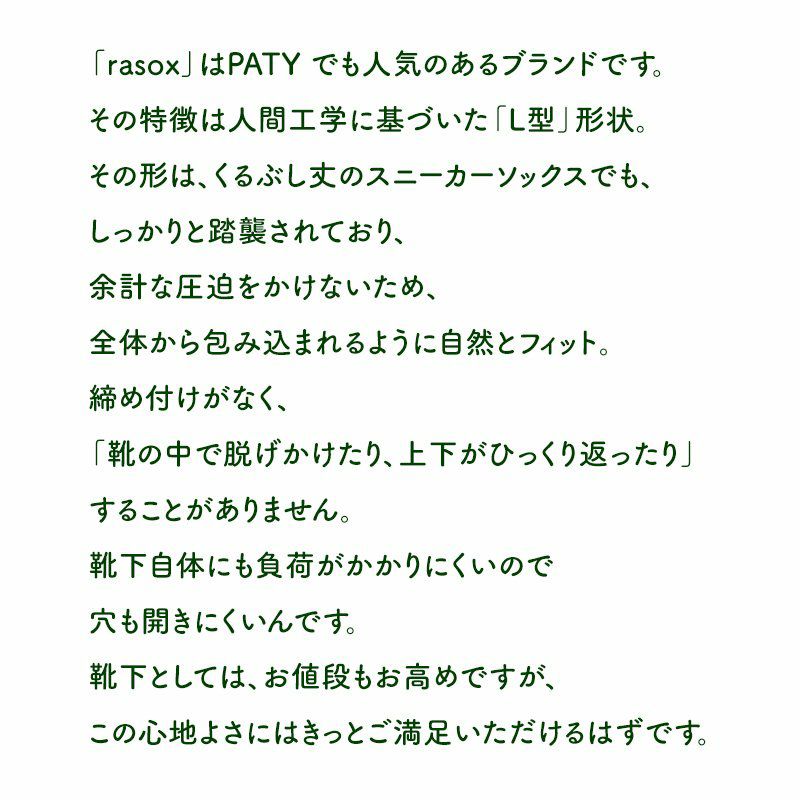 他の画像を見る ずれない、締め付けない、たるまない。なのに、心地良くフィット。 靴下 くつ下 ソックス クルーソックス L字型 つま先 配色 ツートン ボーダー ネップ コットン アクリル 日本製 レディース メンズ 22-24cm 24-26cm 26-28cm PATY rasox ラソックス 【メール便12】[メール便12] 2~3日でお届け 販売価格 ¥ 1,650 税込 在庫切れ 詳細を見る お気に入りに登録する
