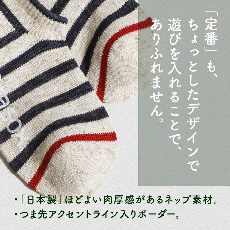 他の画像を見る レトロな色合いと、味わい深いスラブ糸の風合い。 靴下 くつ下 ソックス テーパー L字型 ボーダー スニーカー コットン アクリル 日本製 メンズ レディース 女性用 S M L 22-24cm 24-26cm 26-28cm 40代 50代 |紳士 婦人靴下 男性 女性 ブランド rasox ラソックス 2~3日でお届け 販売価格 ¥ 1,980 税込 在庫切れ 詳細を見る お気に入りに登録する