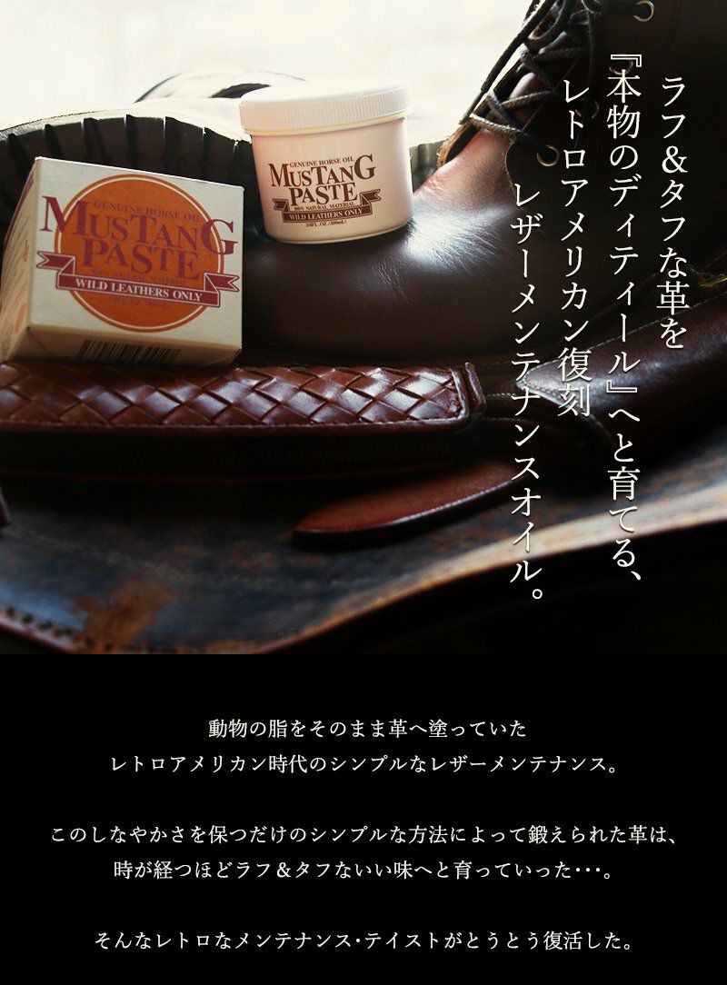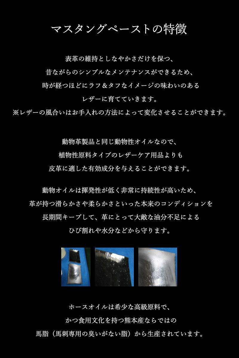 他の画像を見る 革が見違えるほど、よみがえる。 レザーメンテナンス オイル 「純国産 天然 ホースオイル 馬油100% 100ml」 保革油 浸透性 無色 ケア シューケア 革用 皮革手入れ LEATHER MAINTENANCE HORSE OIL 40代 50代 MUSTANG PASTE [マスタングペースト] 2~3日でお届け 販売価格 ¥ 3,080 税込 在庫切れ 詳細を見る お気に入りに登録する