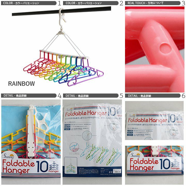他の画像を見る 部屋干しの際にも部屋が明るくなる気がします。 SUNNY RAINBOW フォルダブルハンガー 10連 ハンガー 10連ハンガー レインボーカラー カラフル ポップ 通気性 キャミソール タオル レディース メンズ 2~3日でお届け 販売価格 ¥ 2,090 税込 在庫切れ カートに入れる お気に入りに登録する