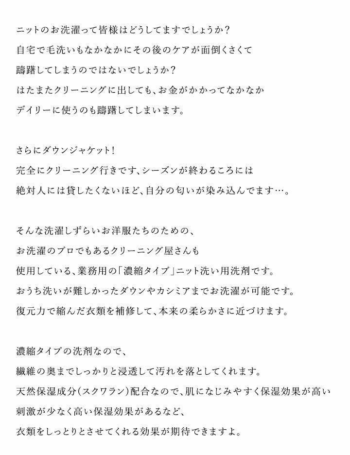 他の画像を見る 普段着で着たいから、どうにかラクチンに洗濯できないものですかね? クリーニング屋さんの濃縮タイプ ニット洗い洗剤 80g 洗濯 洗剤 ニット洗い ダウン洗い ニット カシミア 2~3日でお届け 販売価格 ¥ 1,320 税込 在庫切れ 詳細を見る お気に入りに登録する