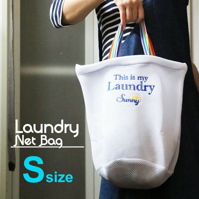 持って帰って、そのまま洗濯機へポンっ! 洗濯ネット ランドリーネット バッグ バッグ型ネット 洗濯 ランドリー レインボー柄 持ち手付き 旅行 ジム コインランドリー Sサイズ 携帯 便利 PATY SUNNY