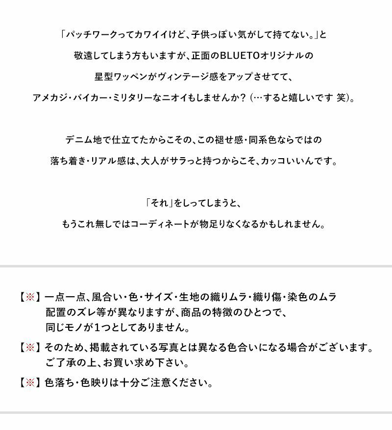 他の画像を見る シンプルな装いでも、このバッグ一つで十分「おかず」になる。 バッグ トート ミニ 『リメイク パッチワーク ユーズド デニム』 メンズ レディース 鞄 旅行 マザーズバッグ|トートバッグ トートバック バック カバン コットン カジュアル ミニトートバッグ バッグ BLUETO [ブルート] 販売価格 ¥ 3,850 税込 在庫切れ カートに入れる お気に入りに登録する