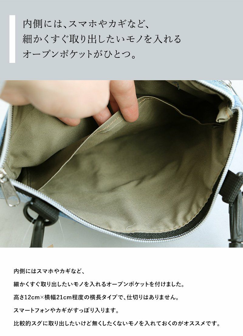 他の画像を見る シンプルな装いでも、このバッグ一つで十分「おかず」になる。 PATY バッグ ショルダー サコッシュ 2WAY 『リメイク パッチワーク ユーズド デニム』 Dカン付き 綿100% 販売価格 ¥ 3,850 税込 在庫切れ カートに入れる お気に入りに登録する