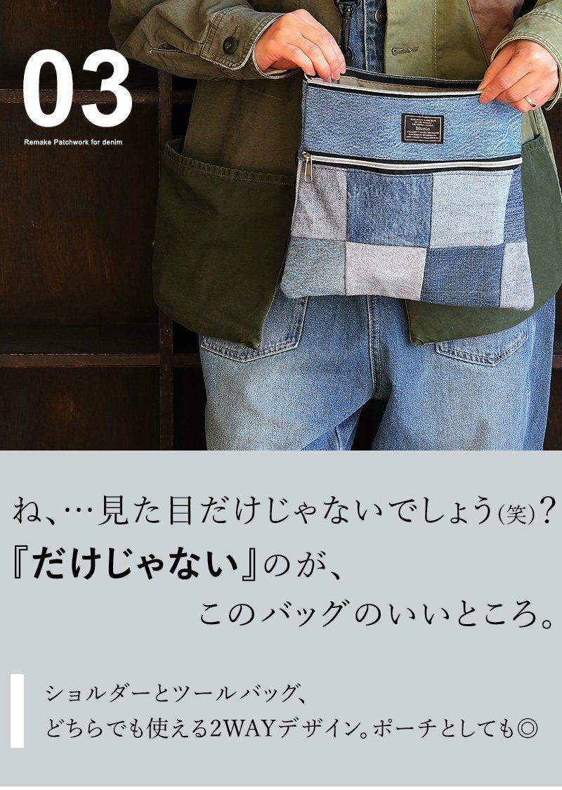 他の画像を見る 見た目以上にモノが入って、映える「おかず」。 PATY 『リメイク パッチワーク ユーズド デニム』 バッグ ボディバッグ ショルダーバッグ リメイクデニム 0.5L 販売価格 ¥ 3,850 税込 在庫切れ カートに入れる お気に入りに登録する