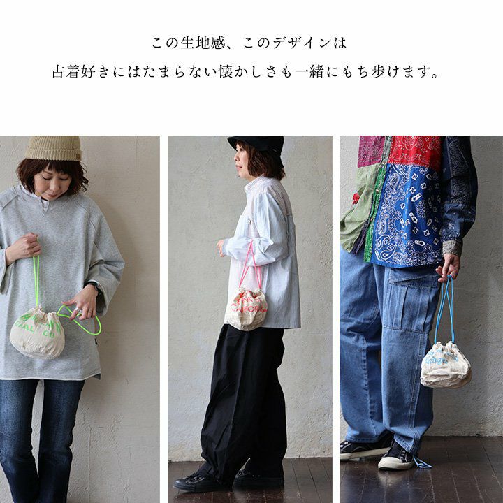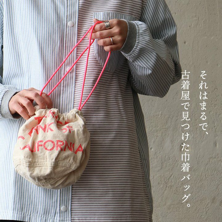他の画像を見る それはまるで、古着屋で見つけた巾着バッグ。 バッグ 巾着型 手提げ ポーチ ニュースペーパーバッグ 大きい リメイク 古着 メンズ レディース コットン キャンバス しっかり生地 お出掛け カジュアル ヴィンテージ パティ 販売価格 ¥ 5,500 税込 カートに入れる お気に入りに登録する