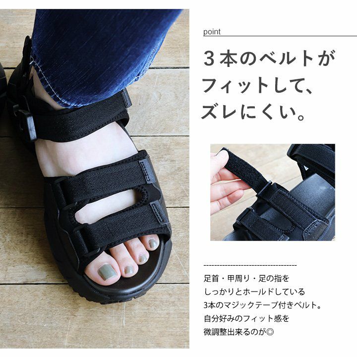 他の画像を見る 毎日履きたくなる「軽さ・楽さ・歩きやすさ」。 サンダル スポーツサンダル レディース 厚底 ベルト マジックテープ 調整可能 バックル クッションインソール 歩きやすい 軽い 疲れにくい カジュアル 夏 パティ 2~3日でお届け 販売価格 ¥ 4,290 税込 詳細を見る お気に入りに登録する