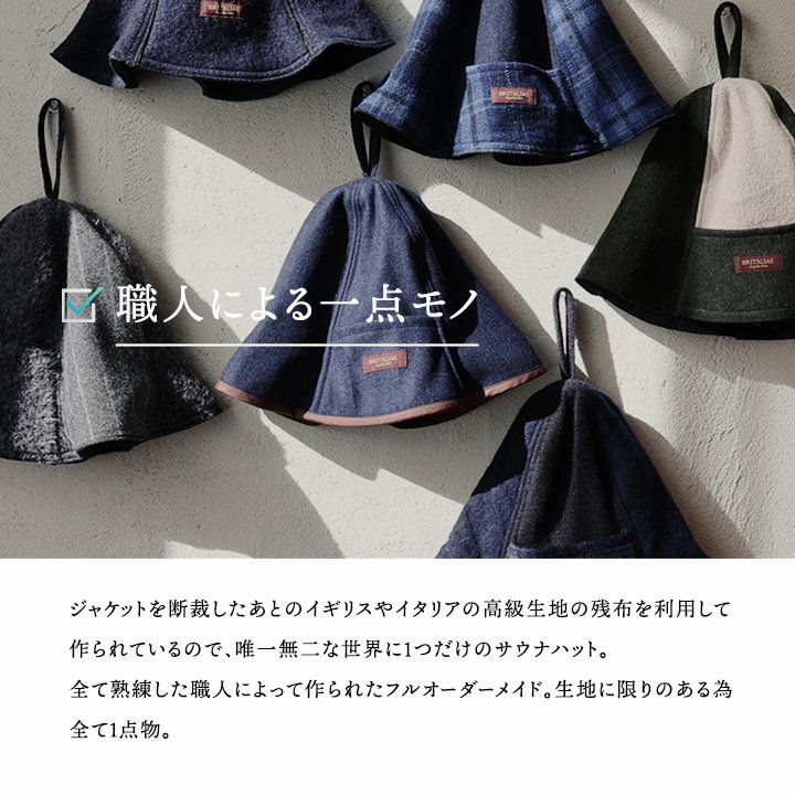他の画像を見る 唯一無二、世界に1つだけの「テーラード」サウナハット。 サウナハット メンズ レディース テーラード 日本製 イタリア製生地 ウール サウナ ロッカーキー ポケット パイピング リメイク スーツ ジャケット パティ BRITALIAE ブリタリエ 2~3日でお届け 販売価格 ¥ 7,700 税込 カートに入れる お気に入りに登録する
