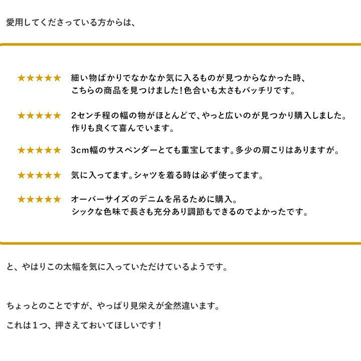 他の画像を見る こんなサスペンダー、ずっと探してた! サスペンダー Y型 太幅 3.5cm幅 ヒッコリー ストライプ柄 ゴム地 クリップ式 吊りバンド レディース メンズ アクセサリー 40代 50代 【メール便50】 2~3日でお届け 販売価格 ¥ 2,090 税込 在庫切れ カートに入れる お気に入りに登録する