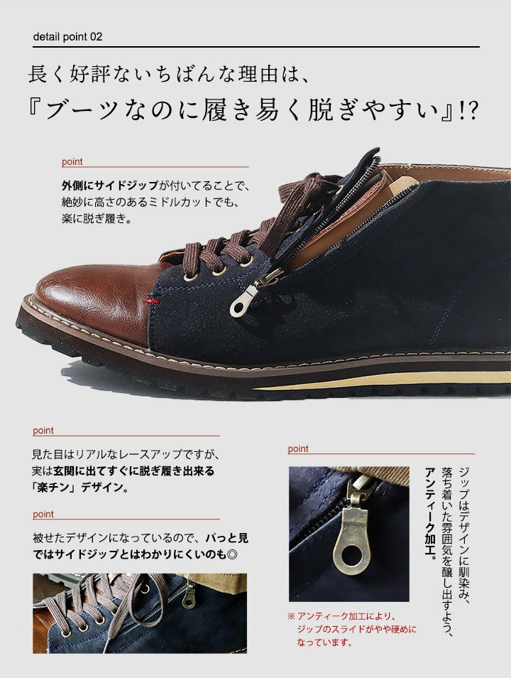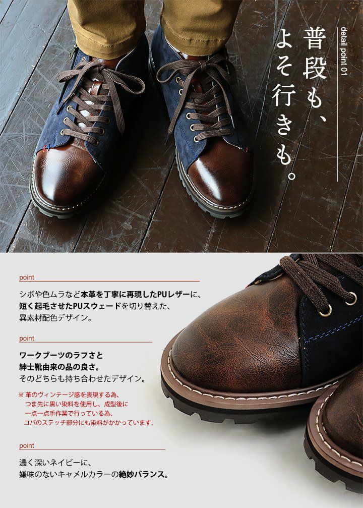 他の画像を見る 履きやすさの3つの理由。 メンズ ブーツ サイドジップ ミドルカット PUレザー x PUスウェード 軽量 軽い ギフト プレゼントに最適 男性 春 夏 秋 冬 メンズシューズ カジュアルシューズ メンズブーツ ショートブーツ 皮 靴 通勤 ビジネス オシャレ 25.5 26.5 27.5 28 PATY パティ 2~3日でお届け 販売価格 ¥ 7,590 税込 在庫切れ 詳細を見る お気に入りに登録する