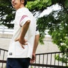 やり尽くされたと思ったけど、『この手があったか!』 星条旗はプリントじゃなく織り柄 Tシャツ ビッグT ティーシャツ 半袖 ワイド 米綿100% 袖口ニット 切り替え メンズ レディースメンズライク 重ね着 大きいサイズ | ティシャツ 半袖tシャツ ティーシャツ BLUETO [ブルート]