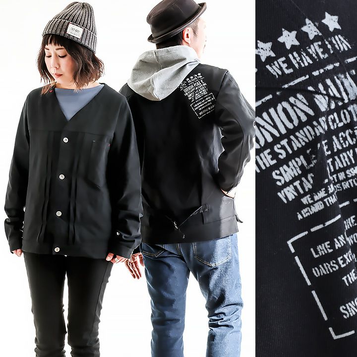 2. Gジャン デニムジャケット ノーカラー レディース メンズ 長袖 アウター ライトアウター コットン 綿100% 春 秋 春服 秋服 バックプリント 大きいサイズ カジュアル 大人 カーディガン ブランド 星 刺繍 黒 ブラック 無地 おしゃれ かっこいい PATY パティ BLUETO ブルート