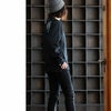【モデルコメント】中は、カットソー1枚くらいが合わせやすそうです。このサイズも、腰周りにフィット感がありますね。中は着込めませんが、着るならこのサイズって感じでした。 【客観的コメント】お尻はほとんど隠れる着丈の長さです。裾周りは結構細身なサイジングでしたね。