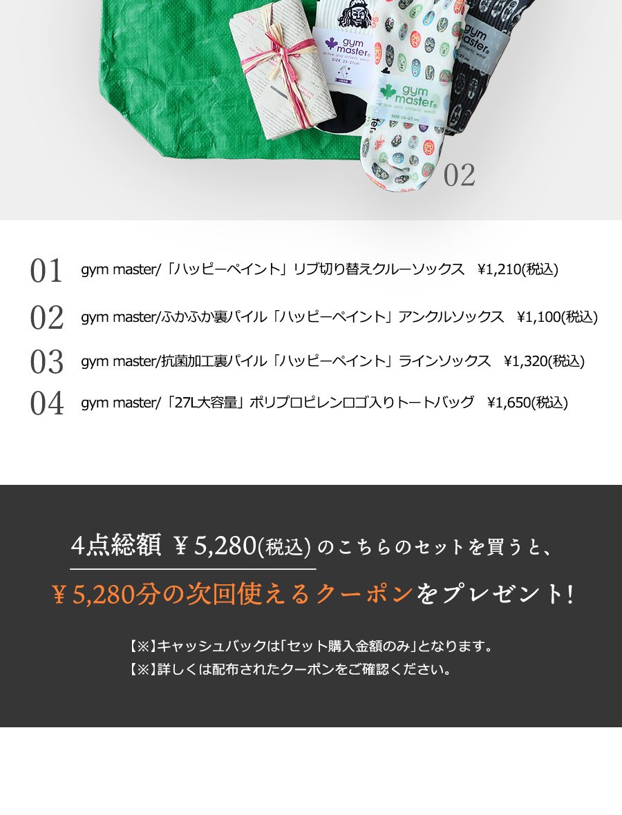 [01.]gym master/ハッピーペイントリブ切り替えクルーソックス \1,210(税込)
