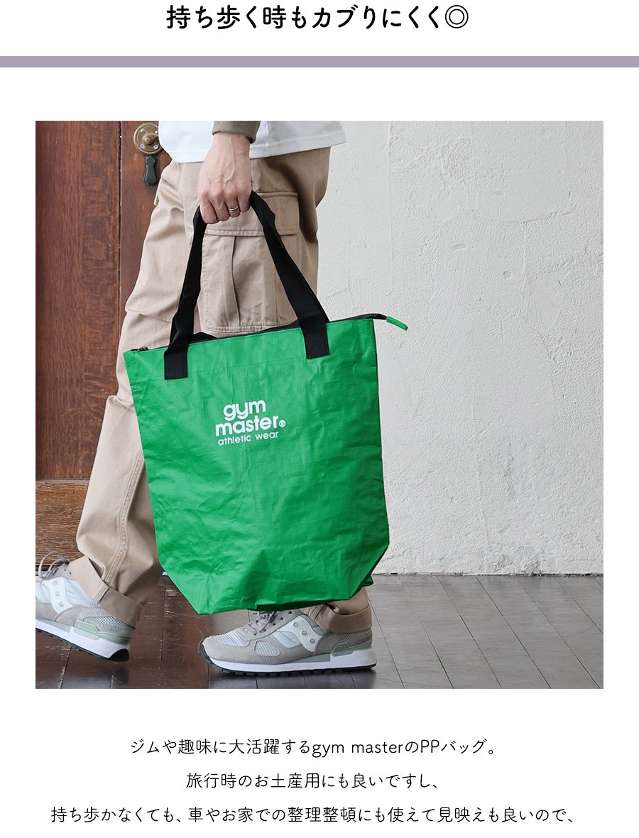 [04.]gym master/「27L大容量」ポリプロピレンロゴ入りトートバッグ \1,650(税込)