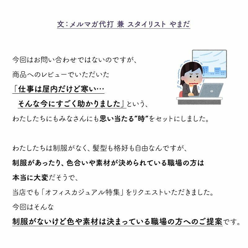 他の画像を見る 私服OKな職場だけでなく、ちょっとキレイによそ行きにも。 コーディネートセット コーデセット 冬 セットアップ 冬 コーディネートセット 福袋 セットアップ レディース ユニセックス カジュアル お試し フリー パティ 販売価格 ¥ 11,999 税込 在庫切れ 詳細を見る お気に入りに登録する