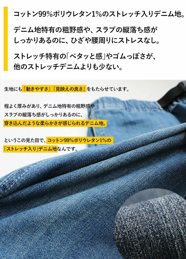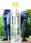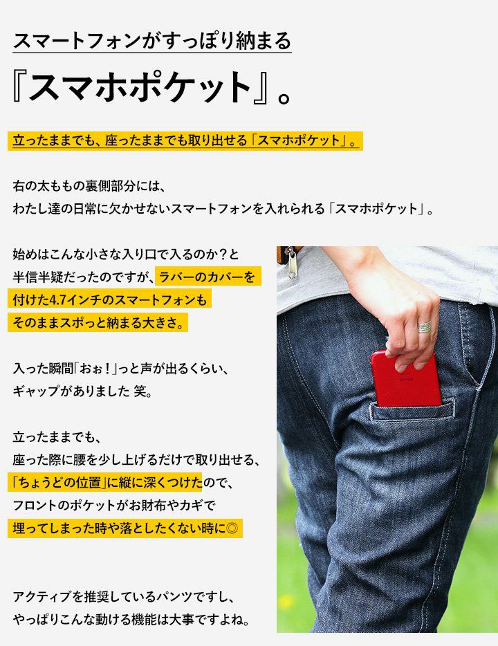 まもるくらいの体型だとMサイズはジャストサイズって感じだね。全体的に軽いフィット感はあるけれども、窮屈感は全然なかったし、シルエットもキレイに出てたよ。すっきりとしたシルエットで穿きたいならオススメのサイズだね。
